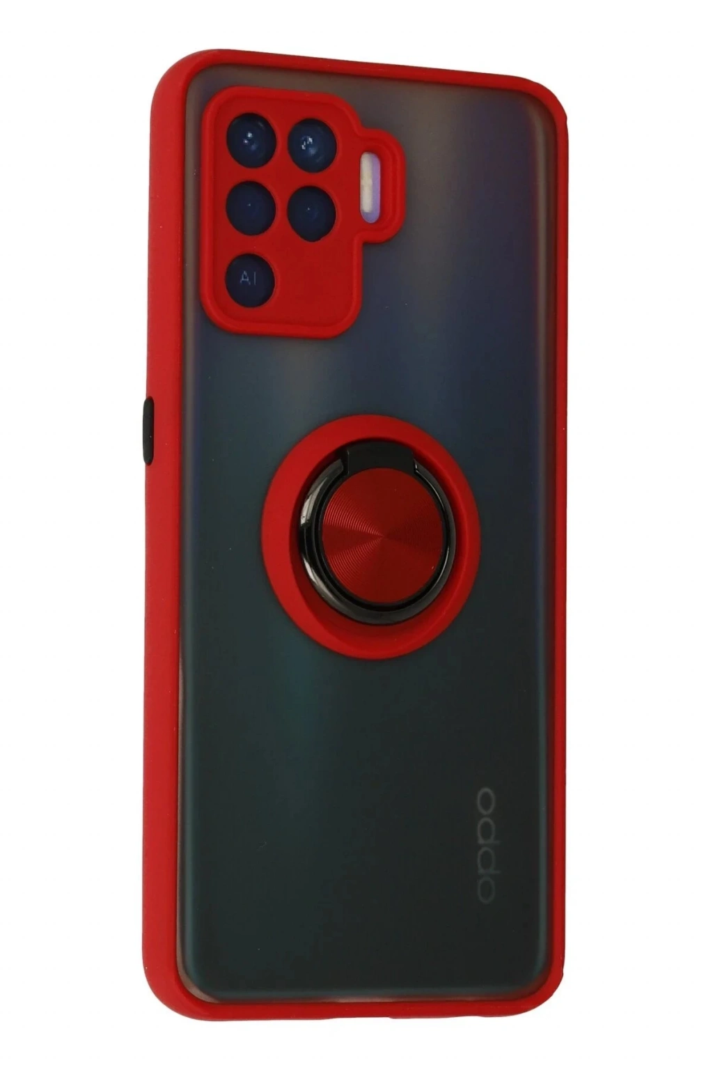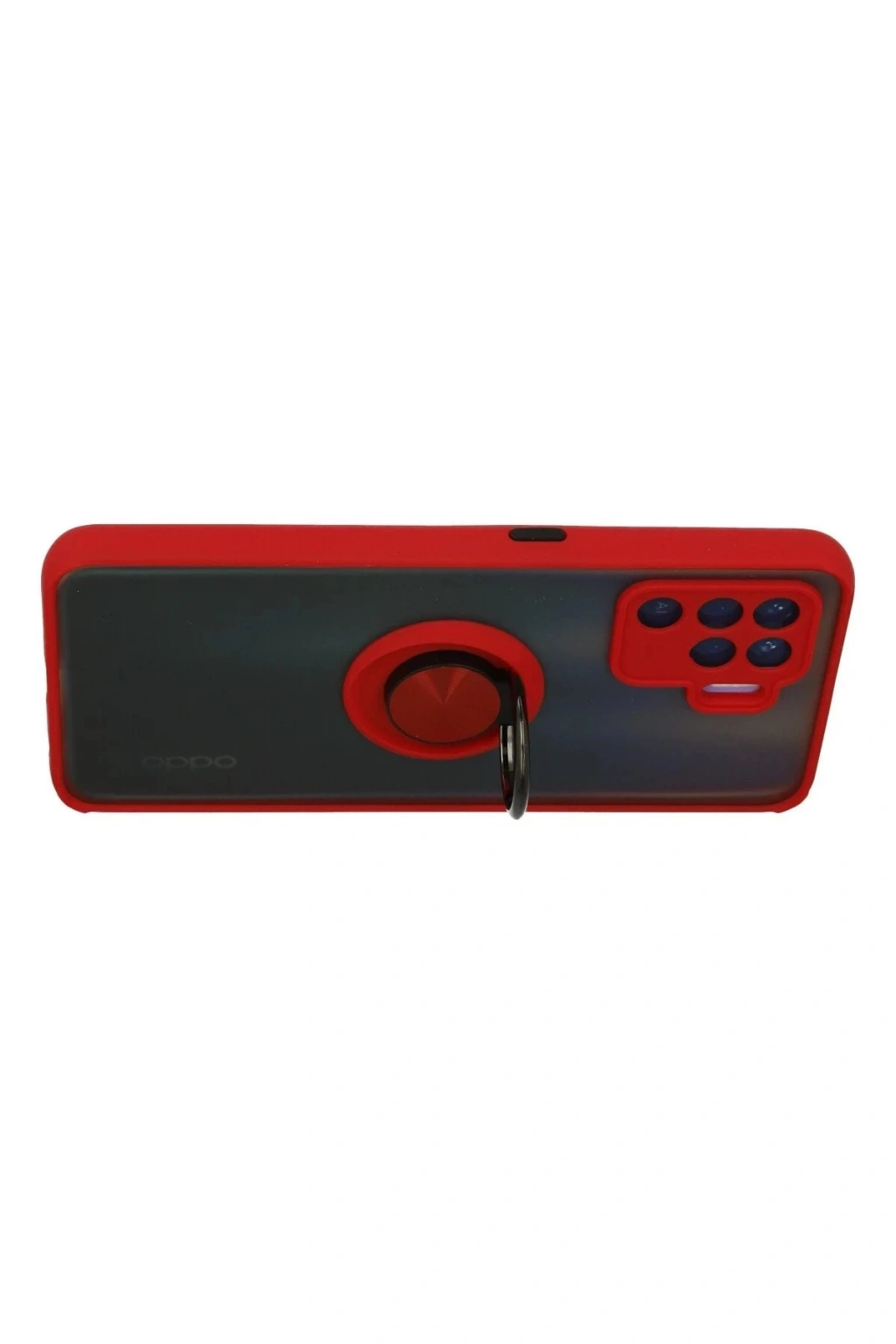 Newface Oppo Reno 5 Lite Kılıf Montreal Yüzüklü Silikon Kapak - Kırmızı