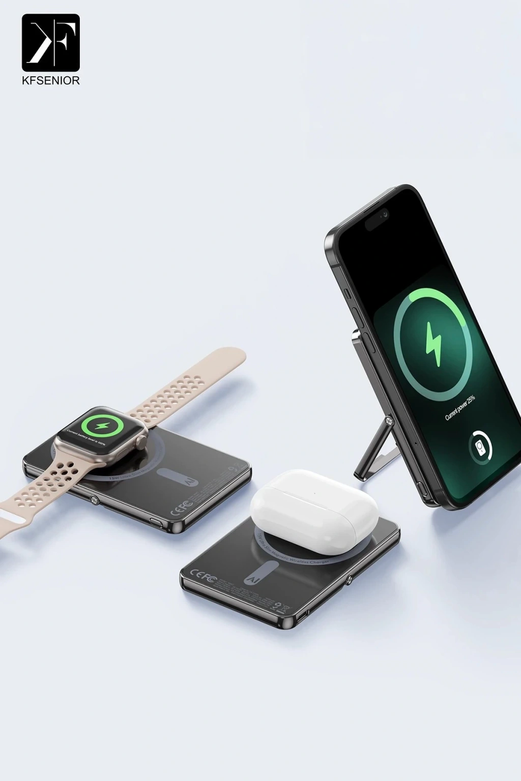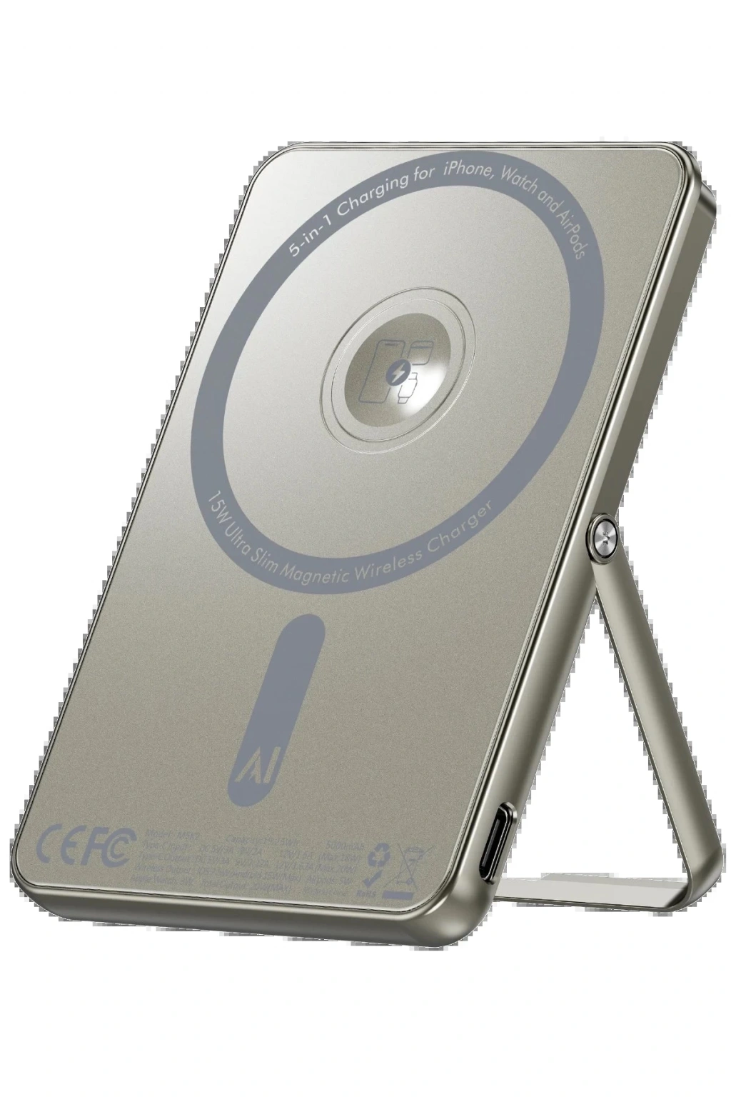 Newface PW580 5.000 mAh 20W Type-C 15W Kablosuz Şarj 3W Saat Şarj ve 5W Kulaklık Şarj Destekli PD Hızlı Şarj Magsafe Powerbank - Titanyum