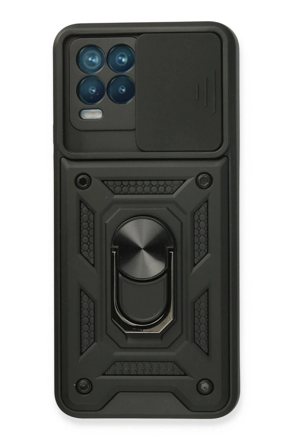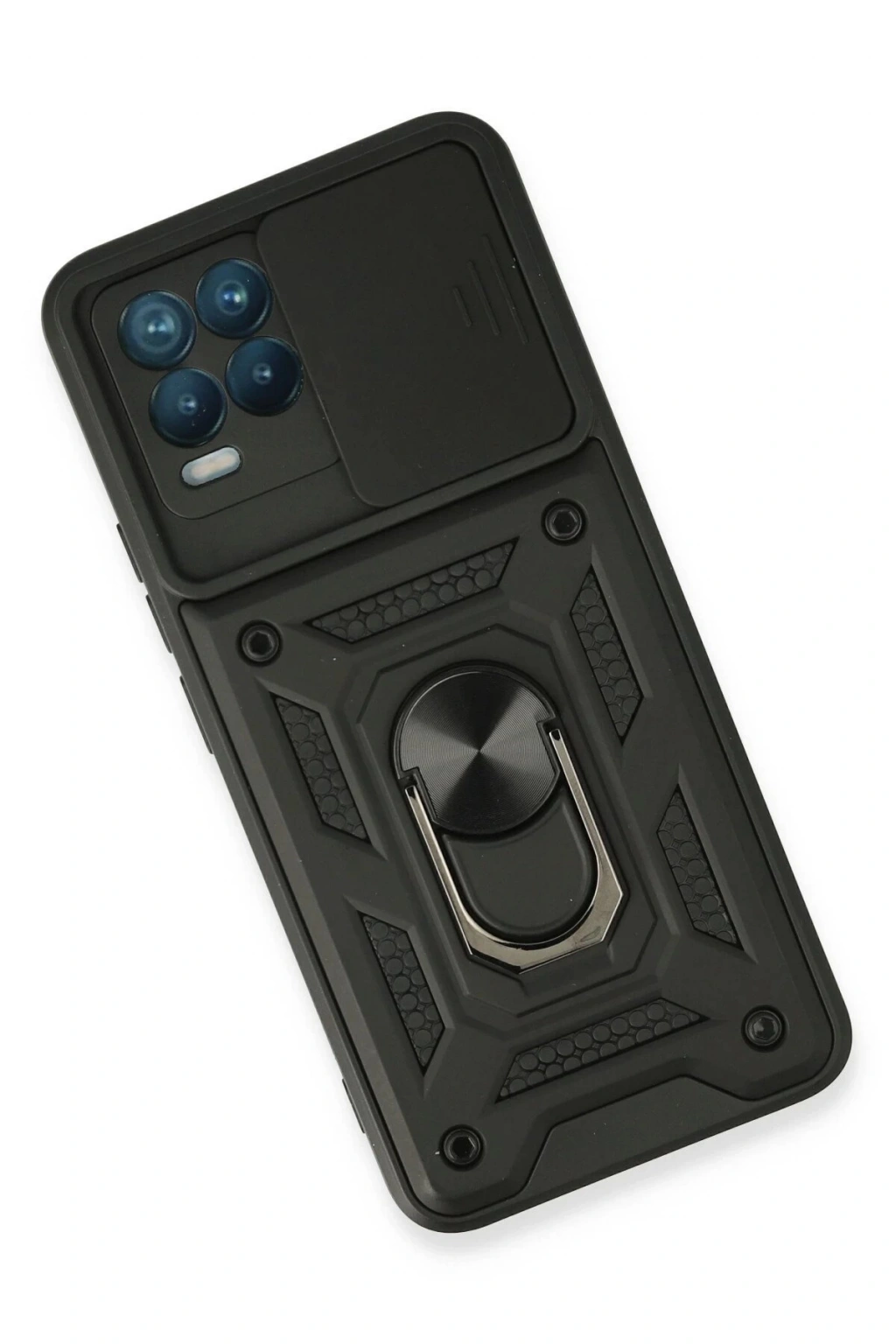 Newface Realme 8 Kılıf Pars Lens Yüzüklü Silikon - Siyah