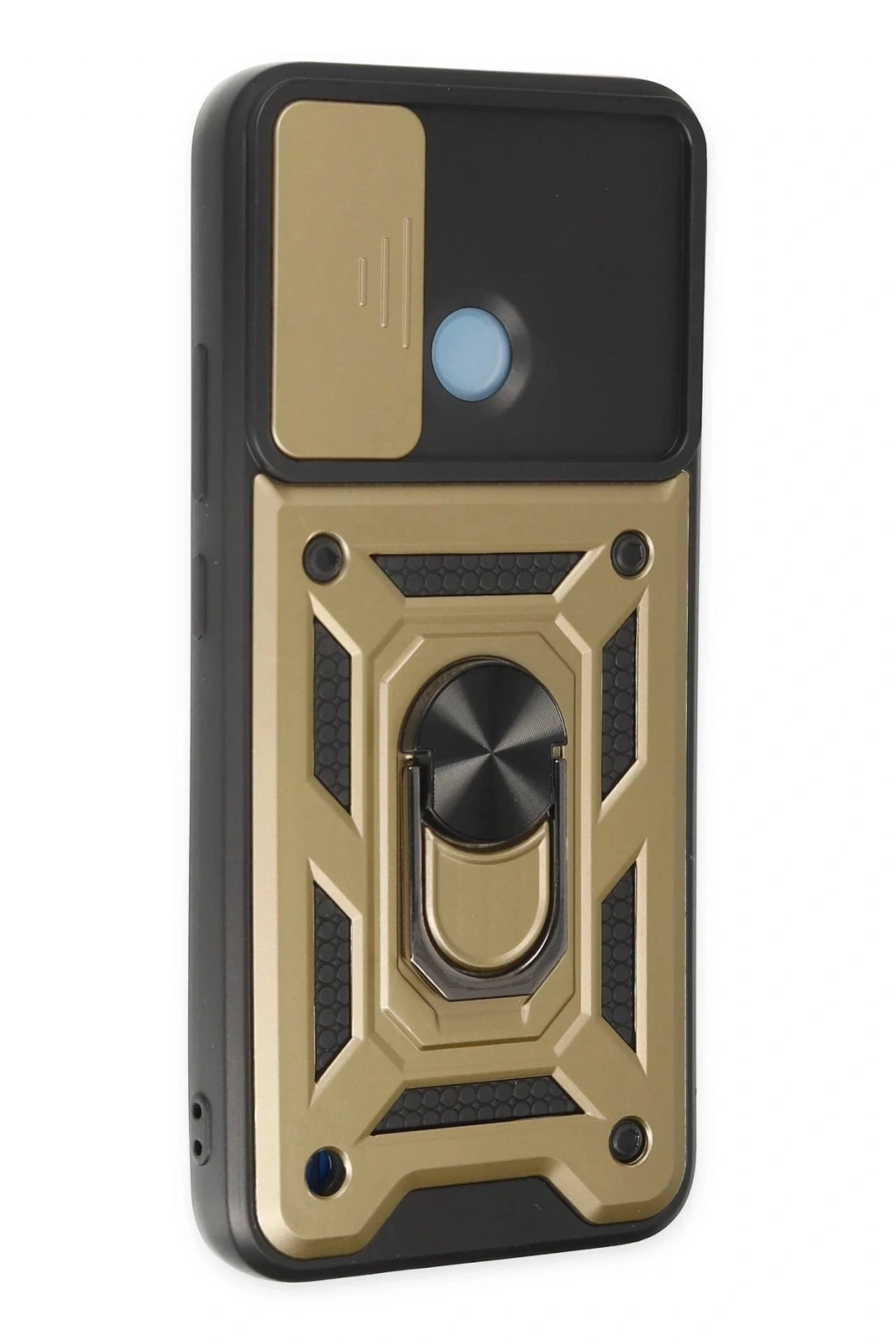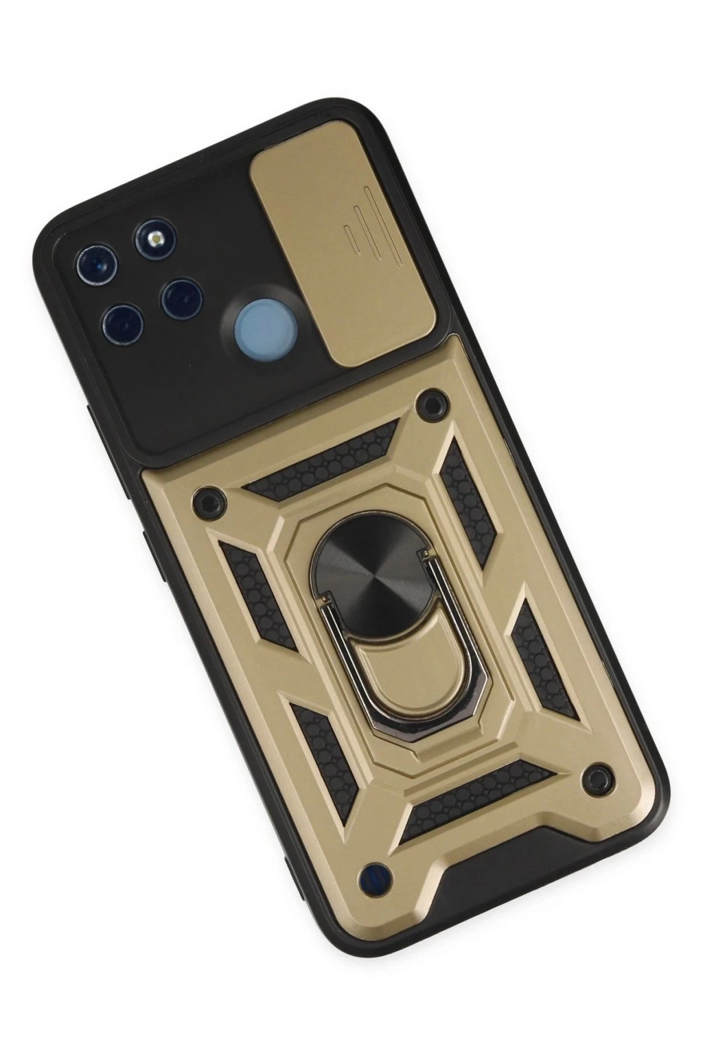 Newface Realme C25Y Kılıf Pars Lens Yüzüklü Silikon - Gold