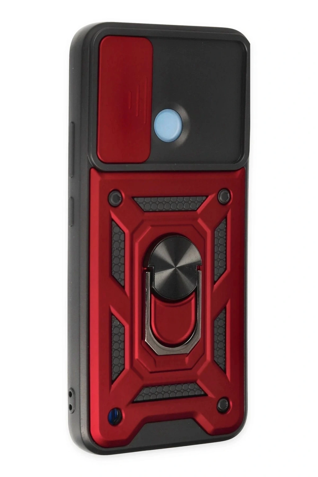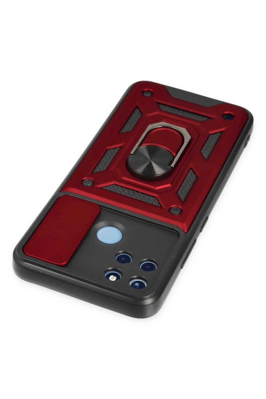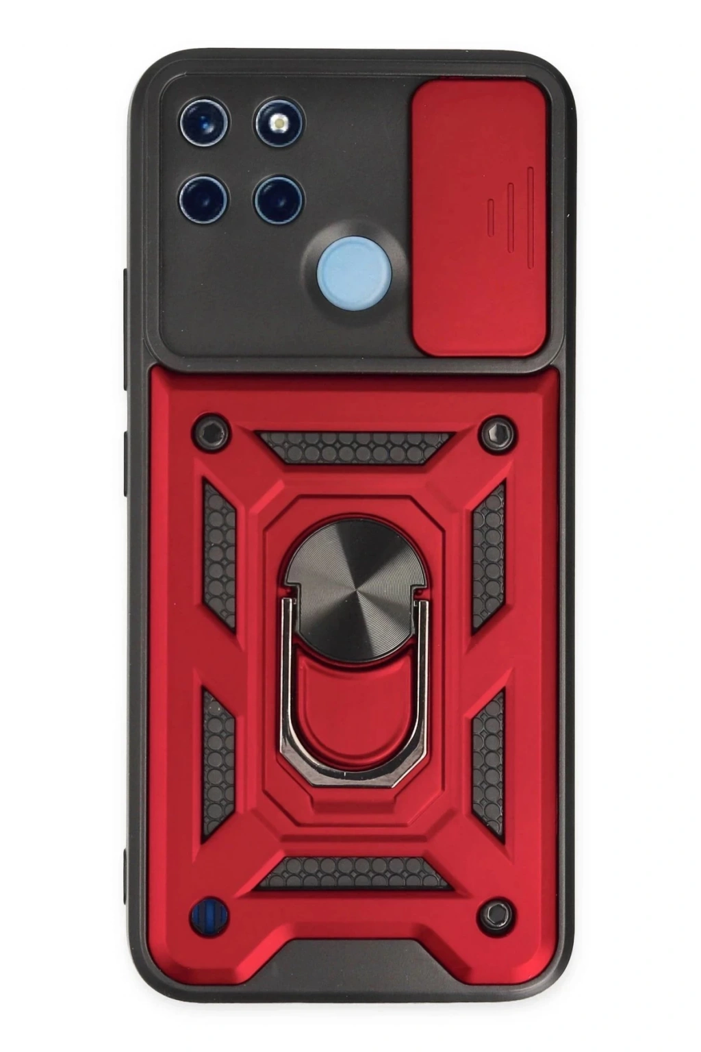 Newface Realme C25Y Kılıf Pars Lens Yüzüklü Silikon - Kırmızı