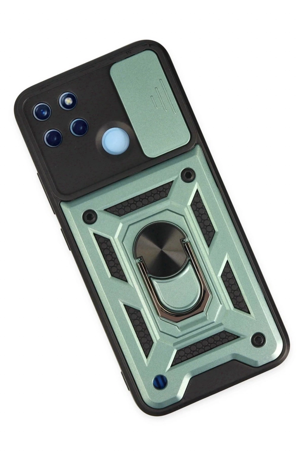 Newface Realme C25Y Kılıf Pars Lens Yüzüklü Silikon - Yeşil