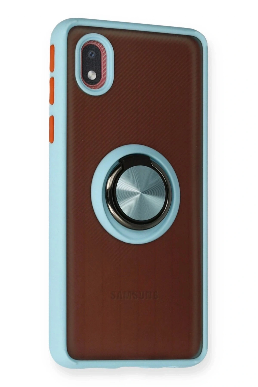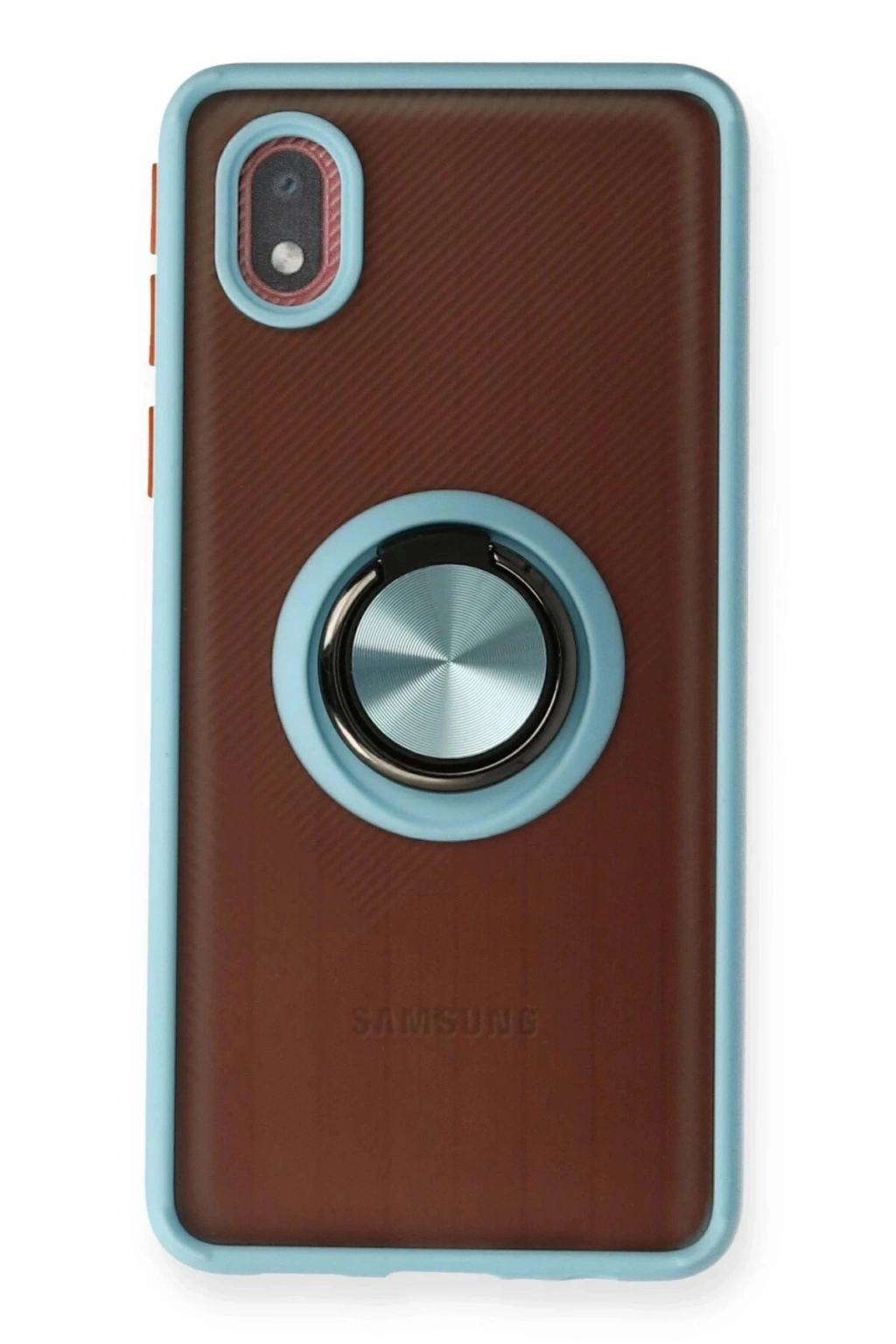 Newface Samsung Galaxy A01 Core Kılıf Montreal Yüzüklü Silikon Kapak - Buz Mavi