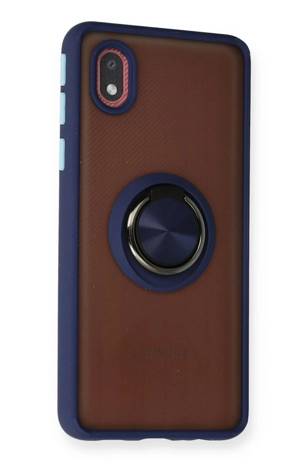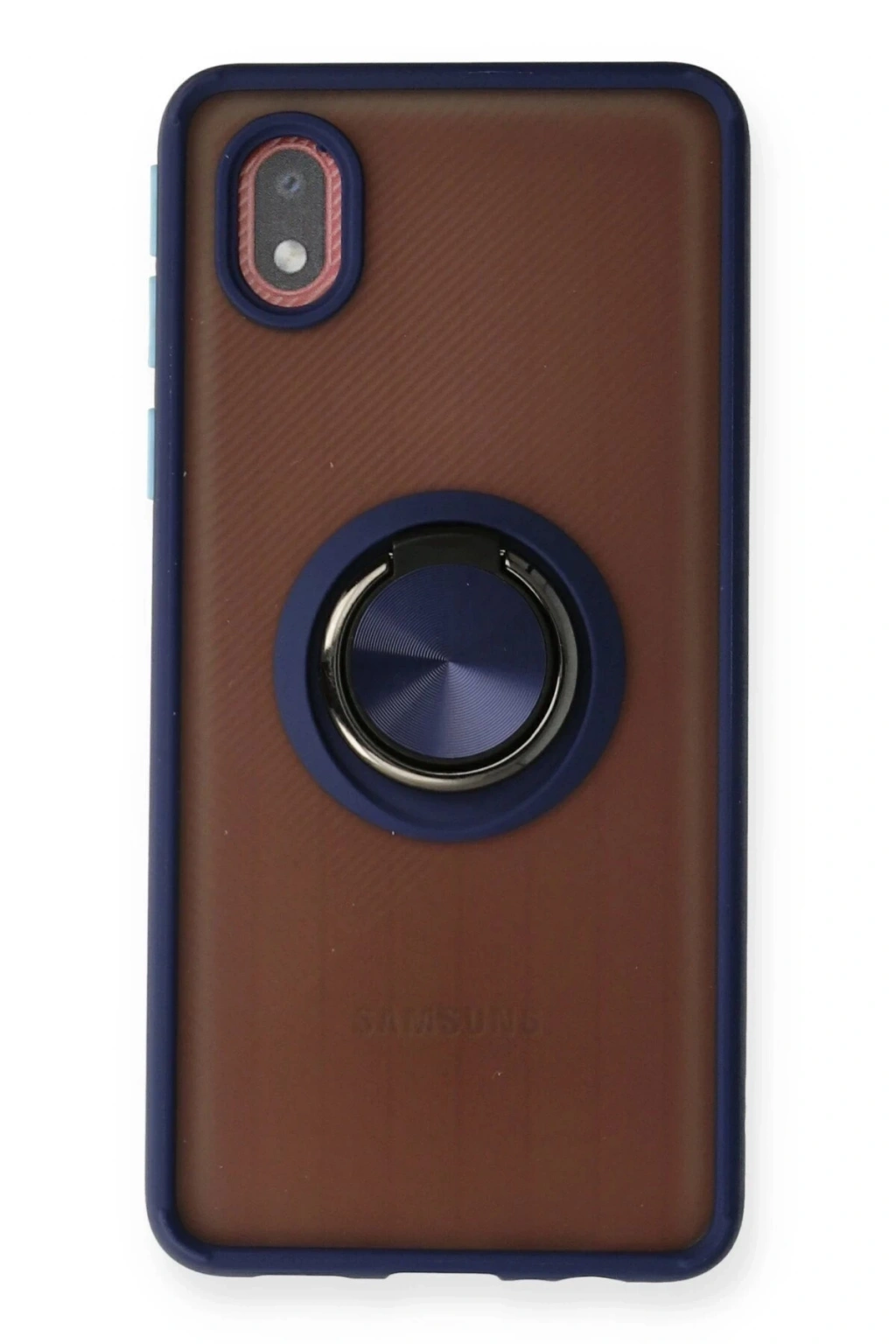 Newface Samsung Galaxy A01 Core Kılıf Montreal Yüzüklü Silikon Kapak - Lacivert