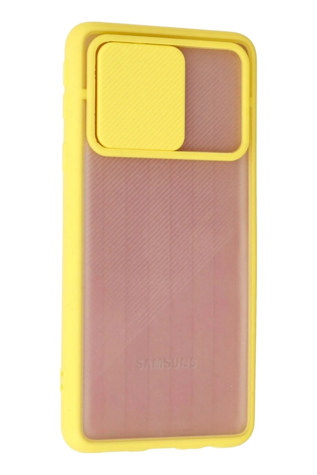 Newface Samsung Galaxy A01 Core Kılıf Palm Buzlu Kamera Sürgülü Silikon - Sarı