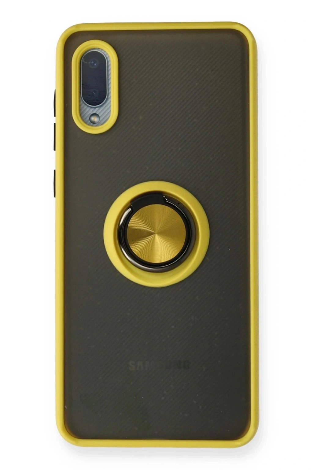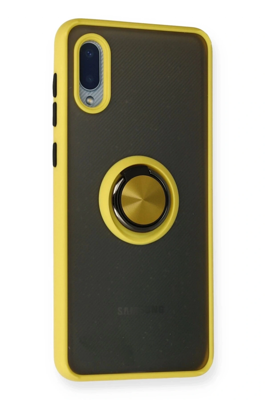 Newface Samsung Galaxy A02 Kılıf Montreal Yüzüklü Silikon Kapak - Sarı