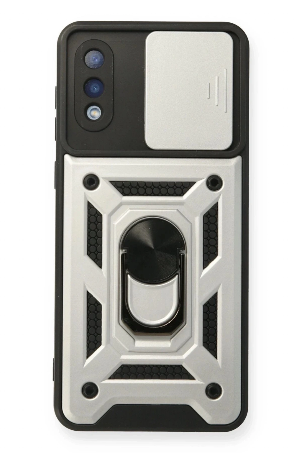 Newface Samsung Galaxy A02 Kılıf Pars Lens Yüzüklü Silikon - Gümüş