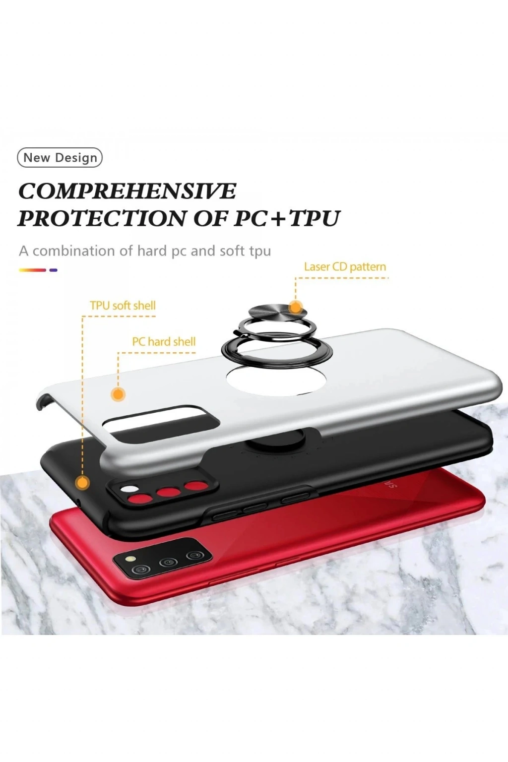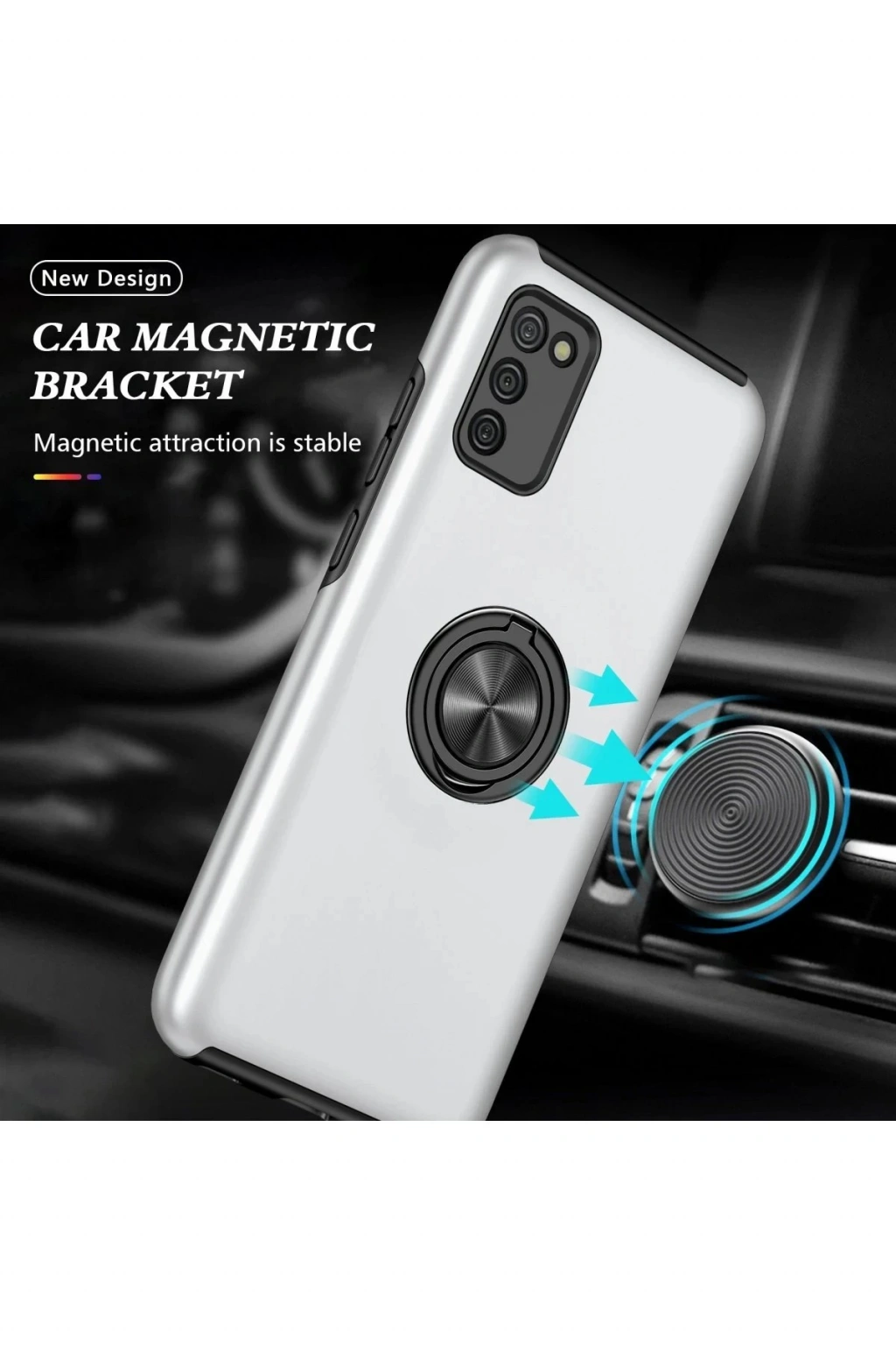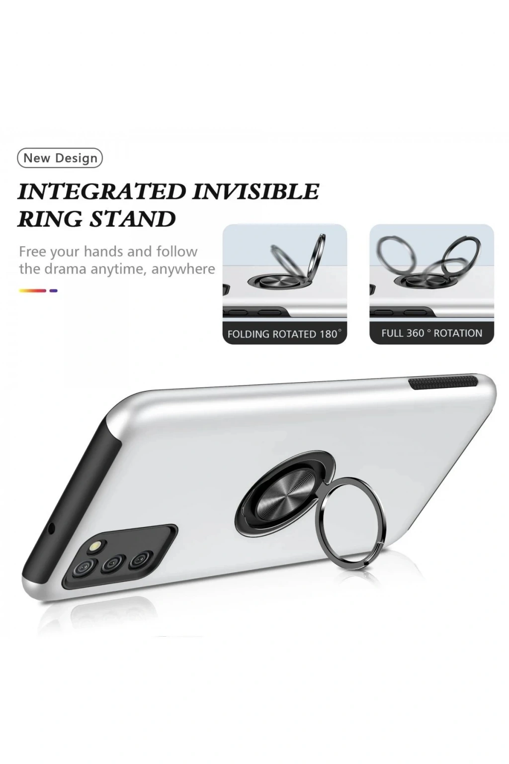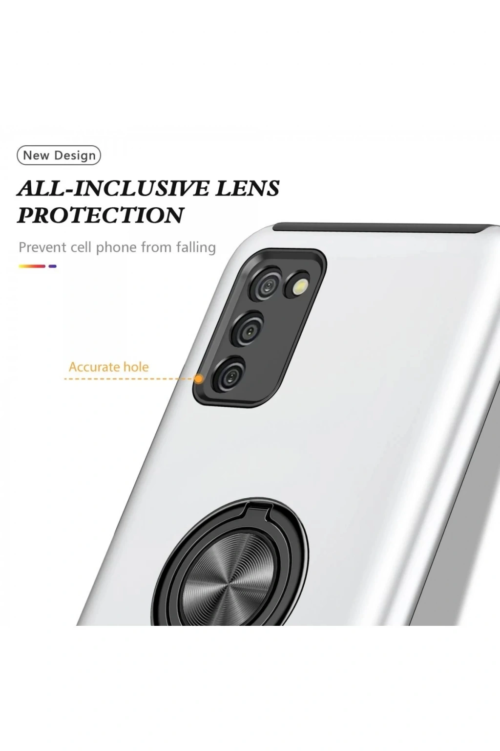 Newface Samsung Galaxy A02S Kılıf Elit Yüzüklü Kapak - Gümüş