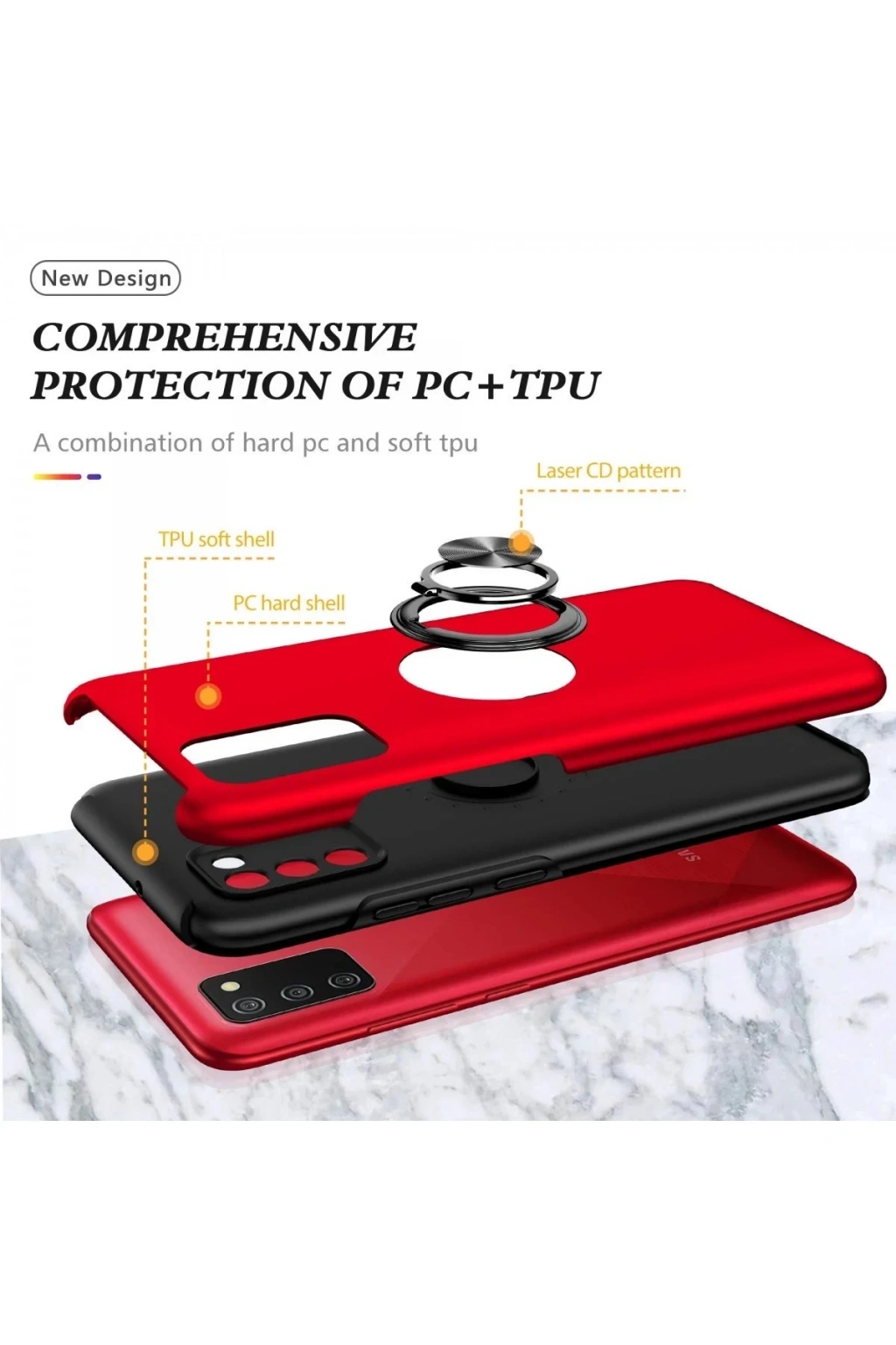 Newface Samsung Galaxy A02S Kılıf Elit Yüzüklü Kapak - Kırmızı