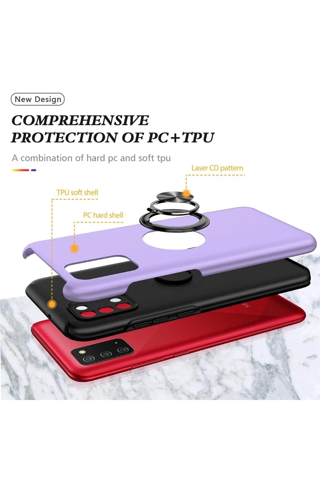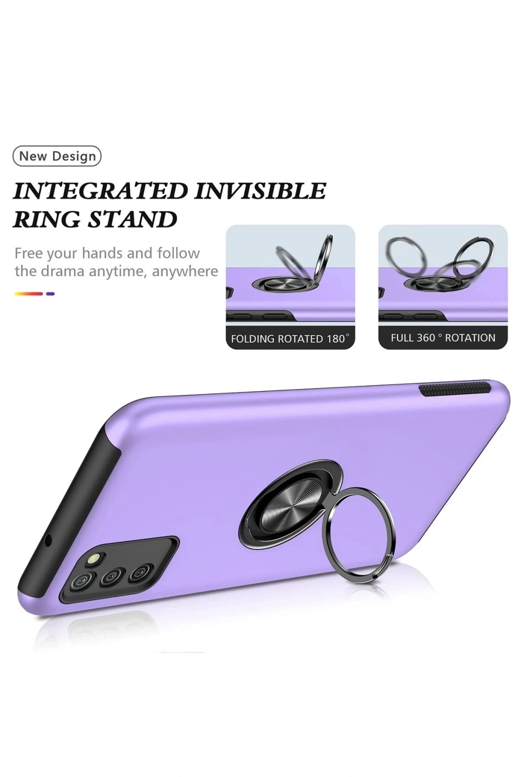 Newface Samsung Galaxy A02S Kılıf Elit Yüzüklü Kapak - Mor