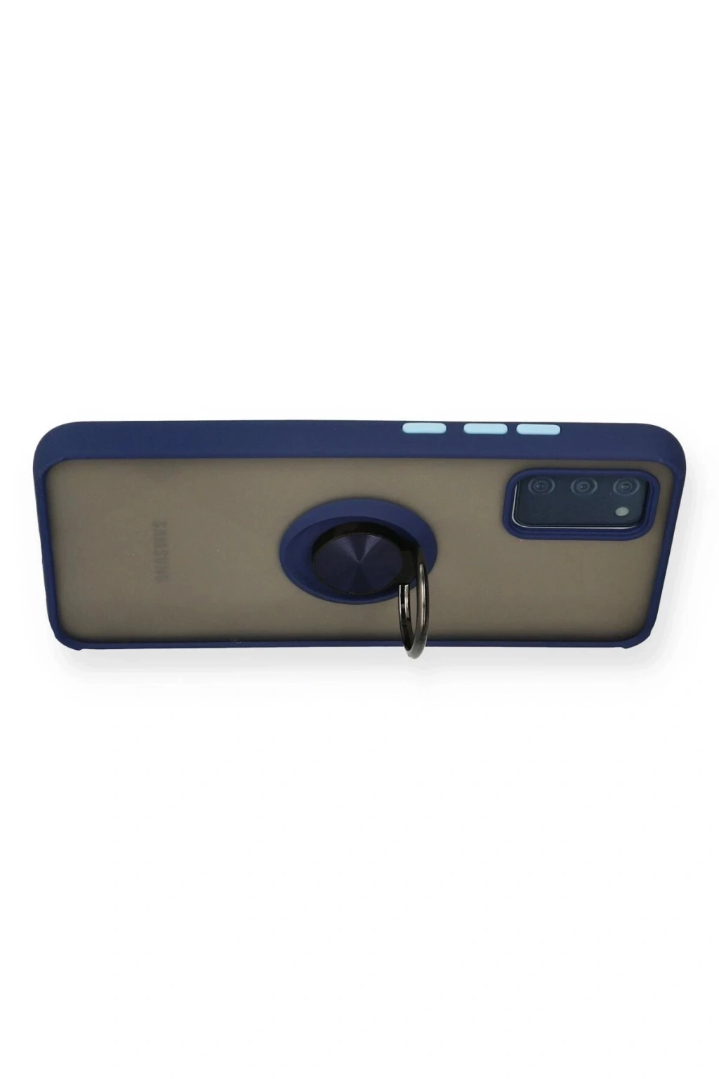 Newface Samsung Galaxy A02S Kılıf Montreal Yüzüklü Silikon Kapak - Lacivert