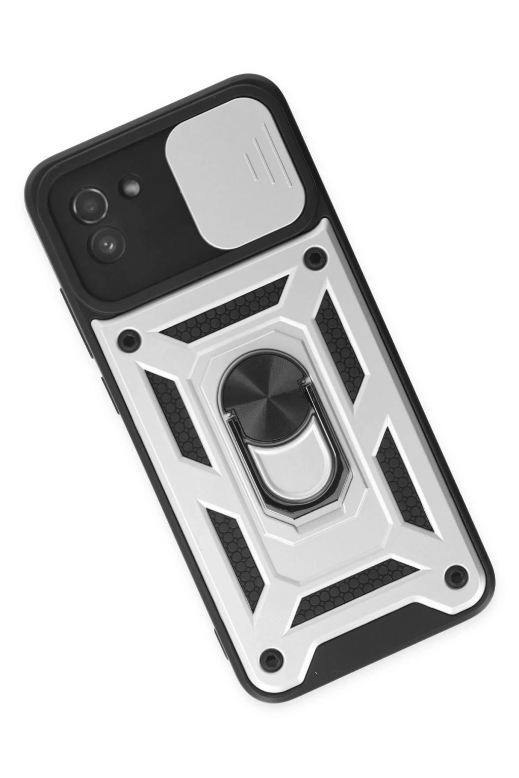 Newface Samsung Galaxy A03 Kılıf Pars Lens Yüzüklü Silikon - Gümüş