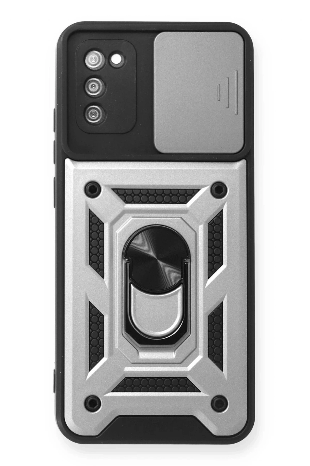 Newface Samsung Galaxy A03S Kılıf Pars Lens Yüzüklü Silikon - Gümüş