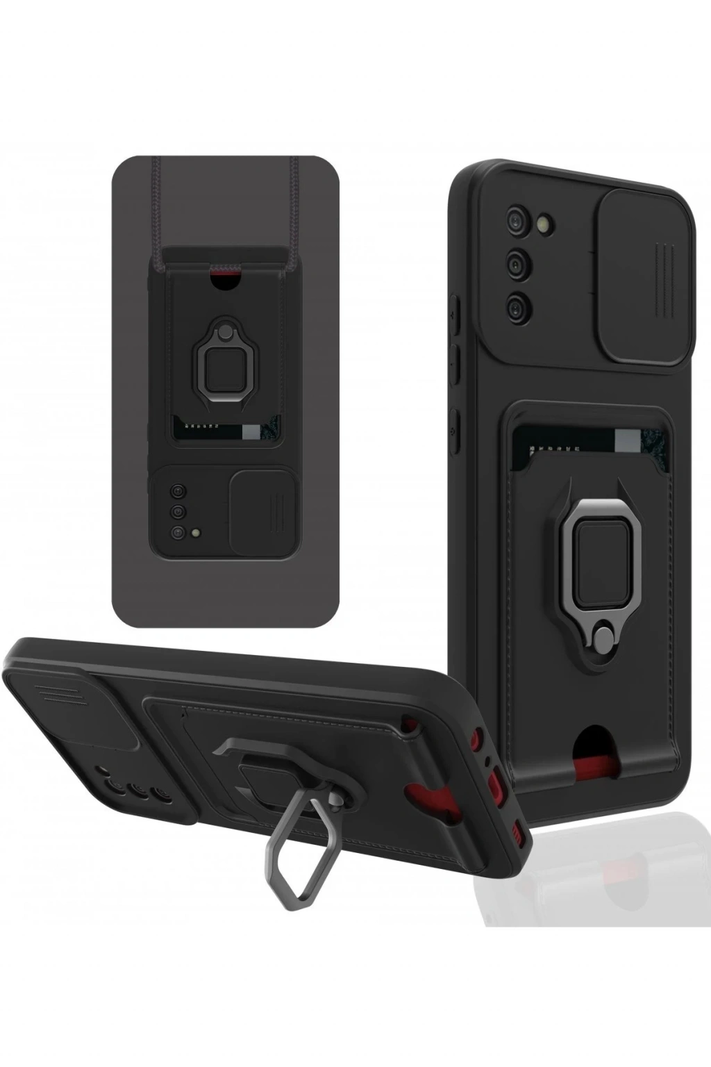 Newface Samsung Galaxy A03S Kılıf Zuma Kartvizitli Yüzüklü Silikon - Siyah