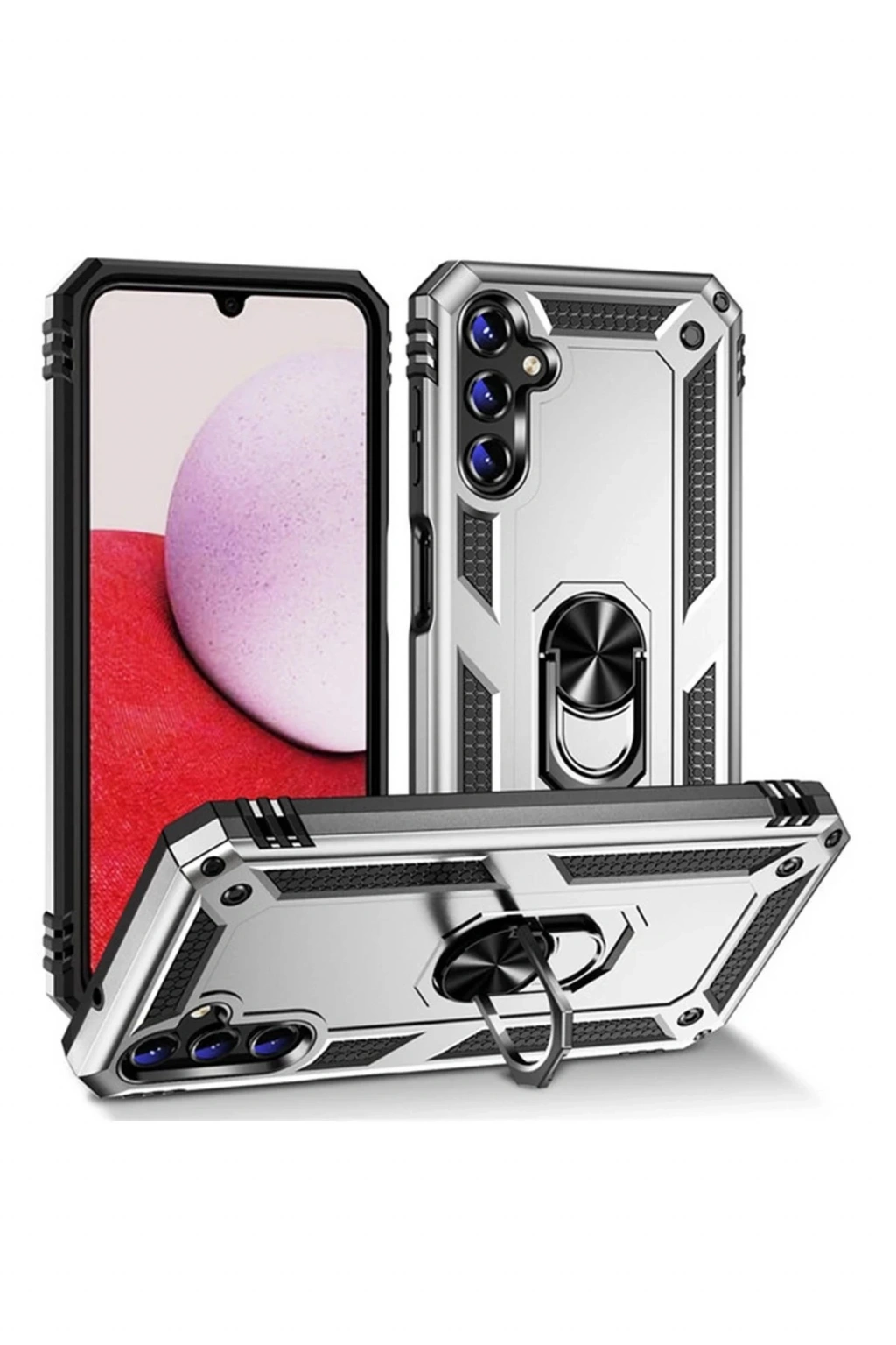 Newface Samsung Galaxy A04S Kılıf Sofya Yüzüklü Silikon Kapak - Gümüş