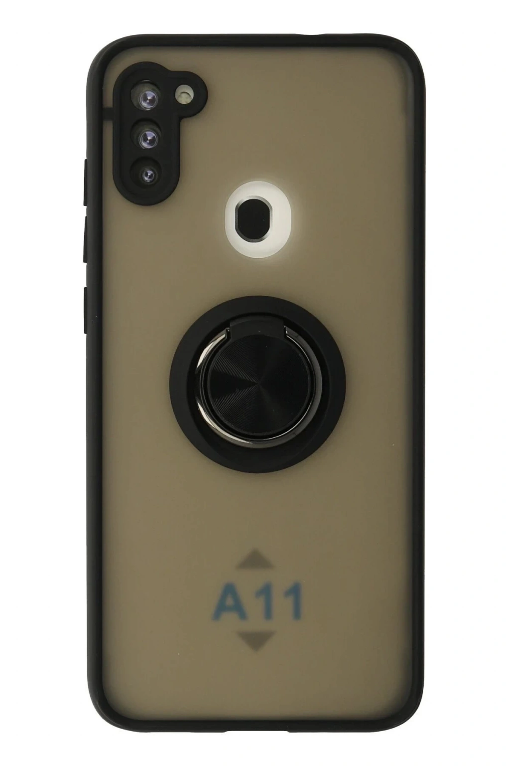 Newface Samsung Galaxy A11 Kılıf Montreal Yüzüklü Silikon Kapak - Siyah