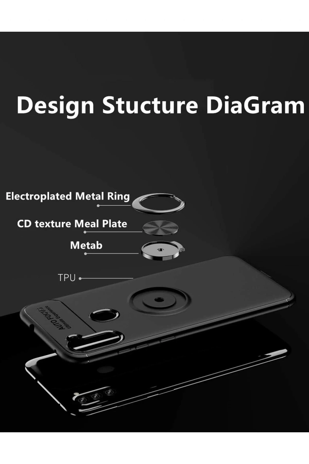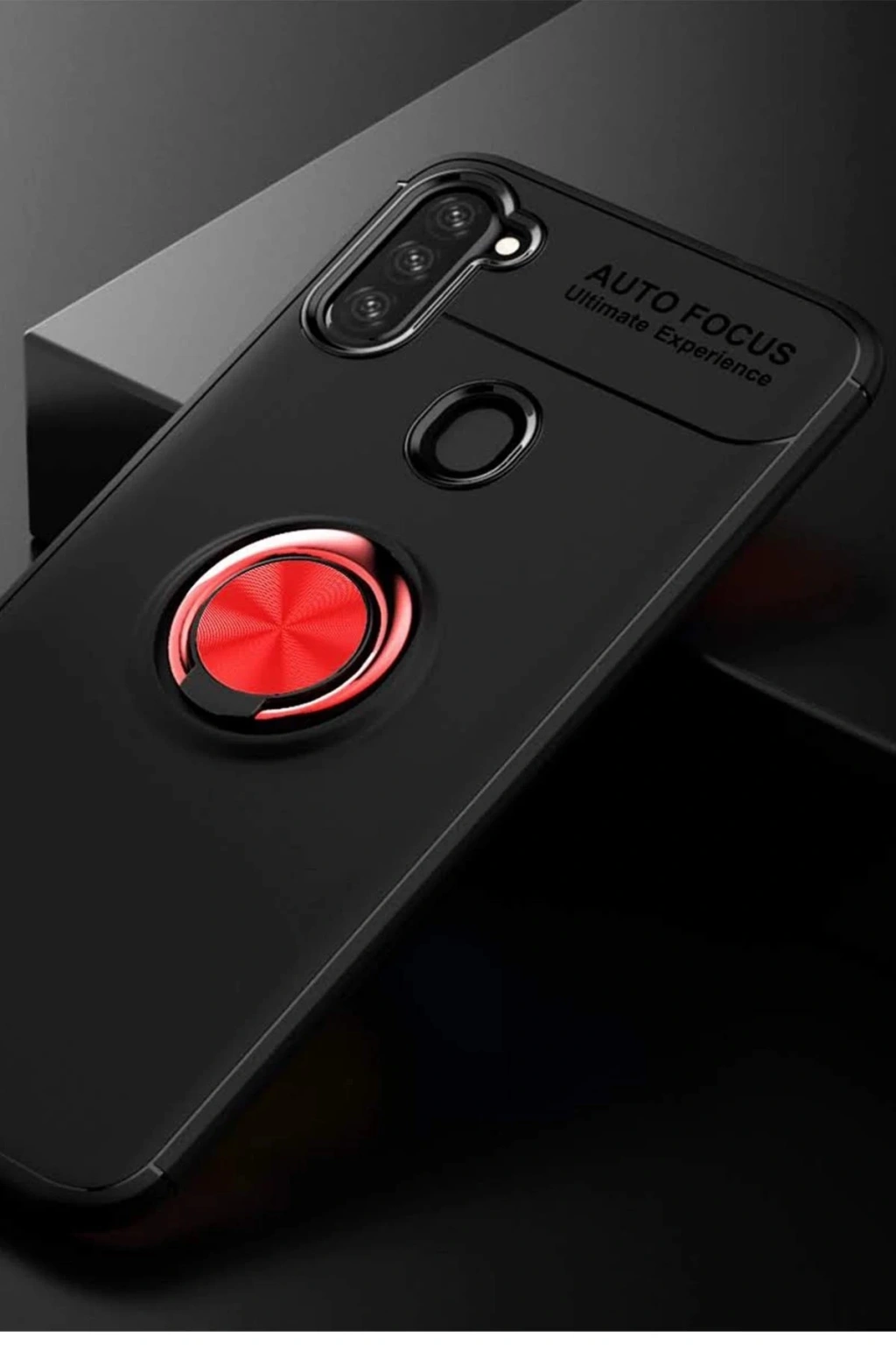 Newface Samsung Galaxy A11 Kılıf Range Yüzüklü Silikon - Siyah-Kırmızı