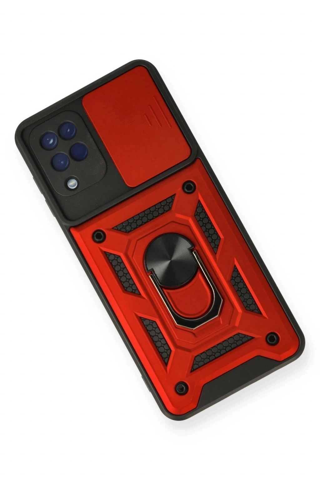 Newface Samsung Galaxy A12 Kılıf Pars Lens Yüzüklü Silikon - Kırmızı