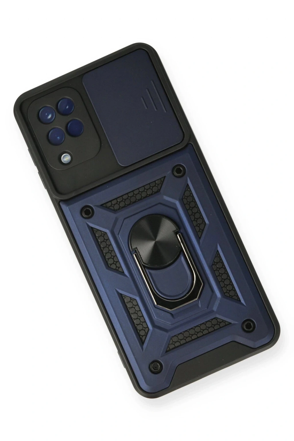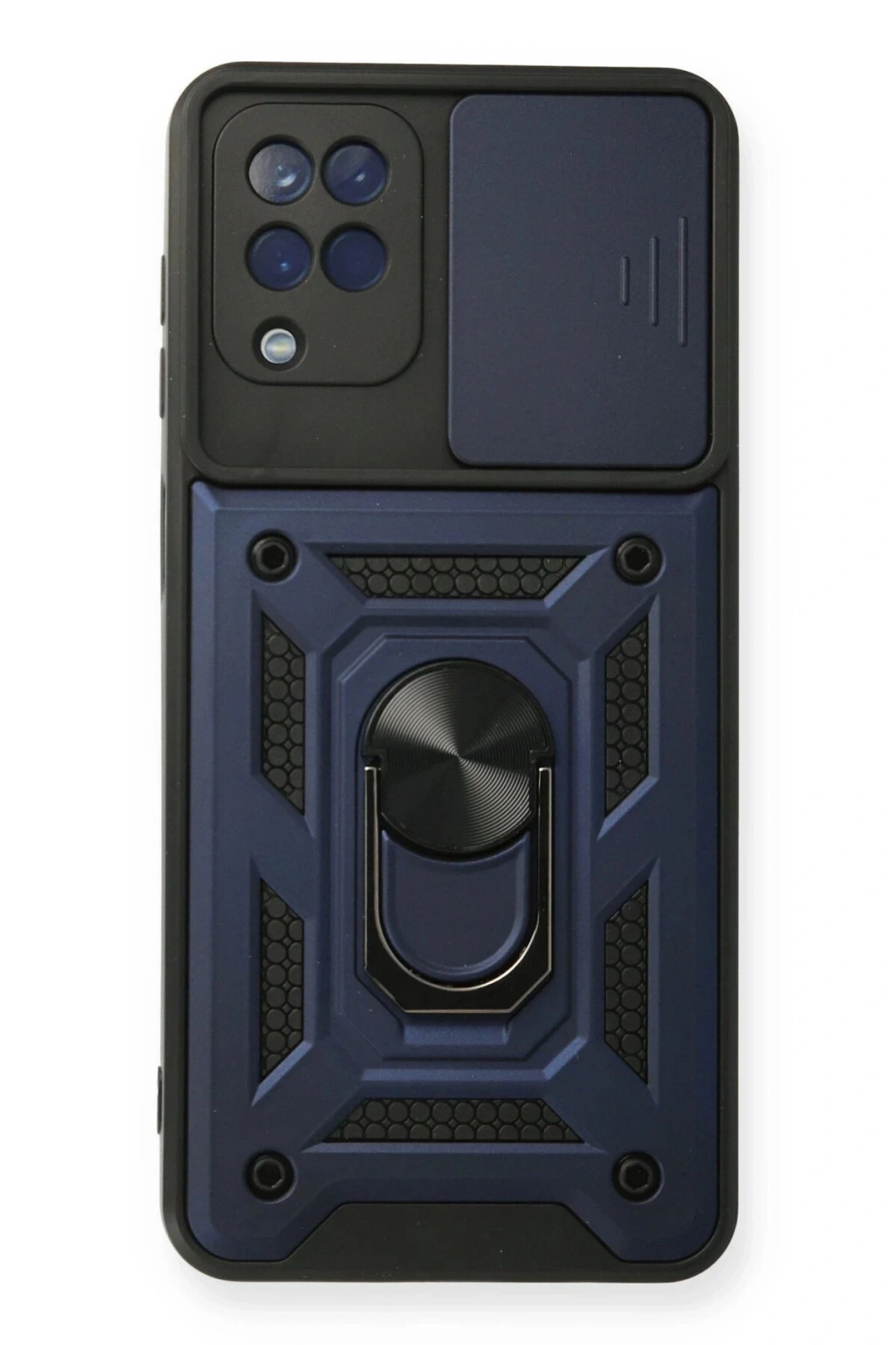 Newface Samsung Galaxy A12 Kılıf Pars Lens Yüzüklü Silikon - Lacivert