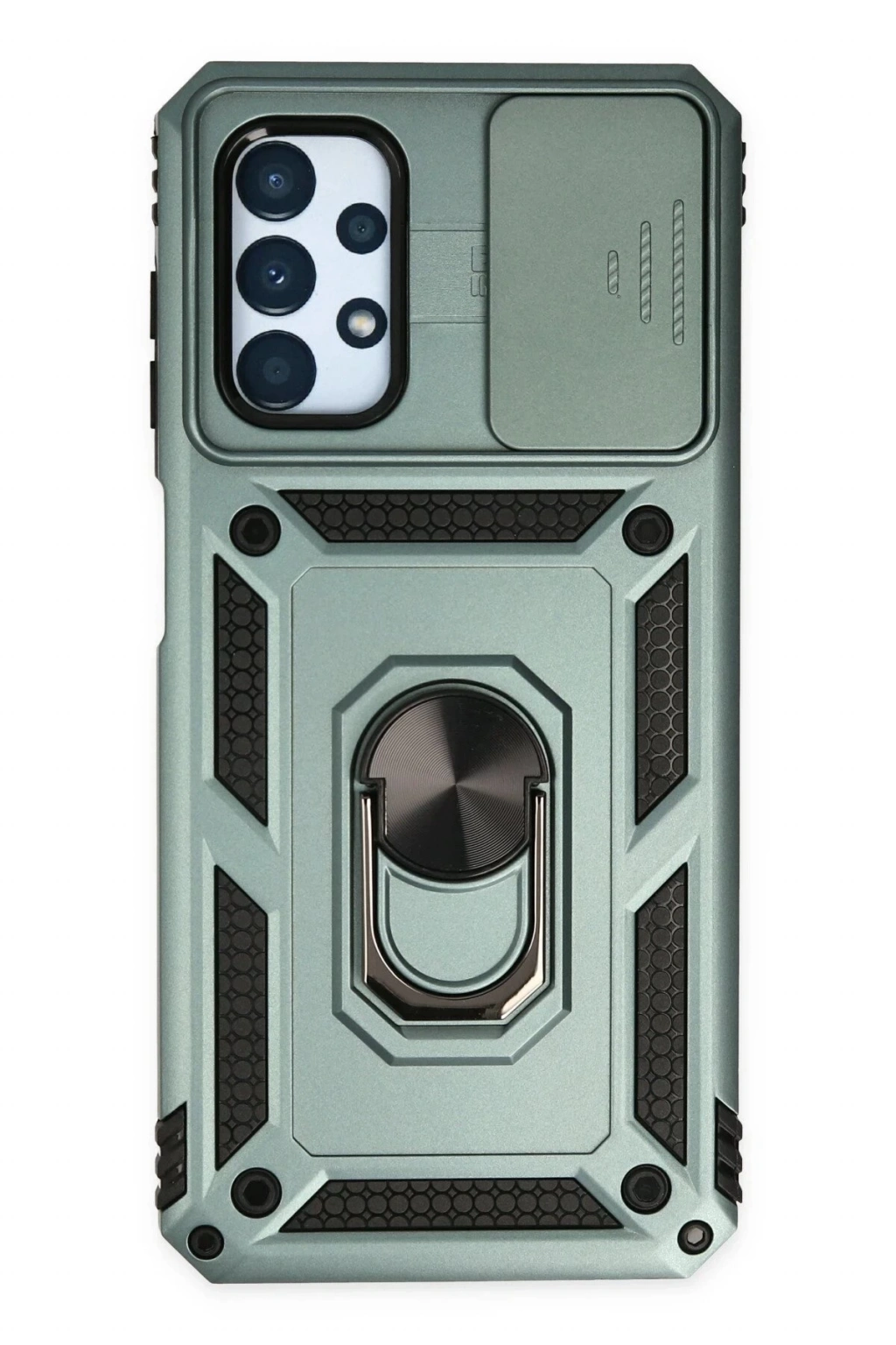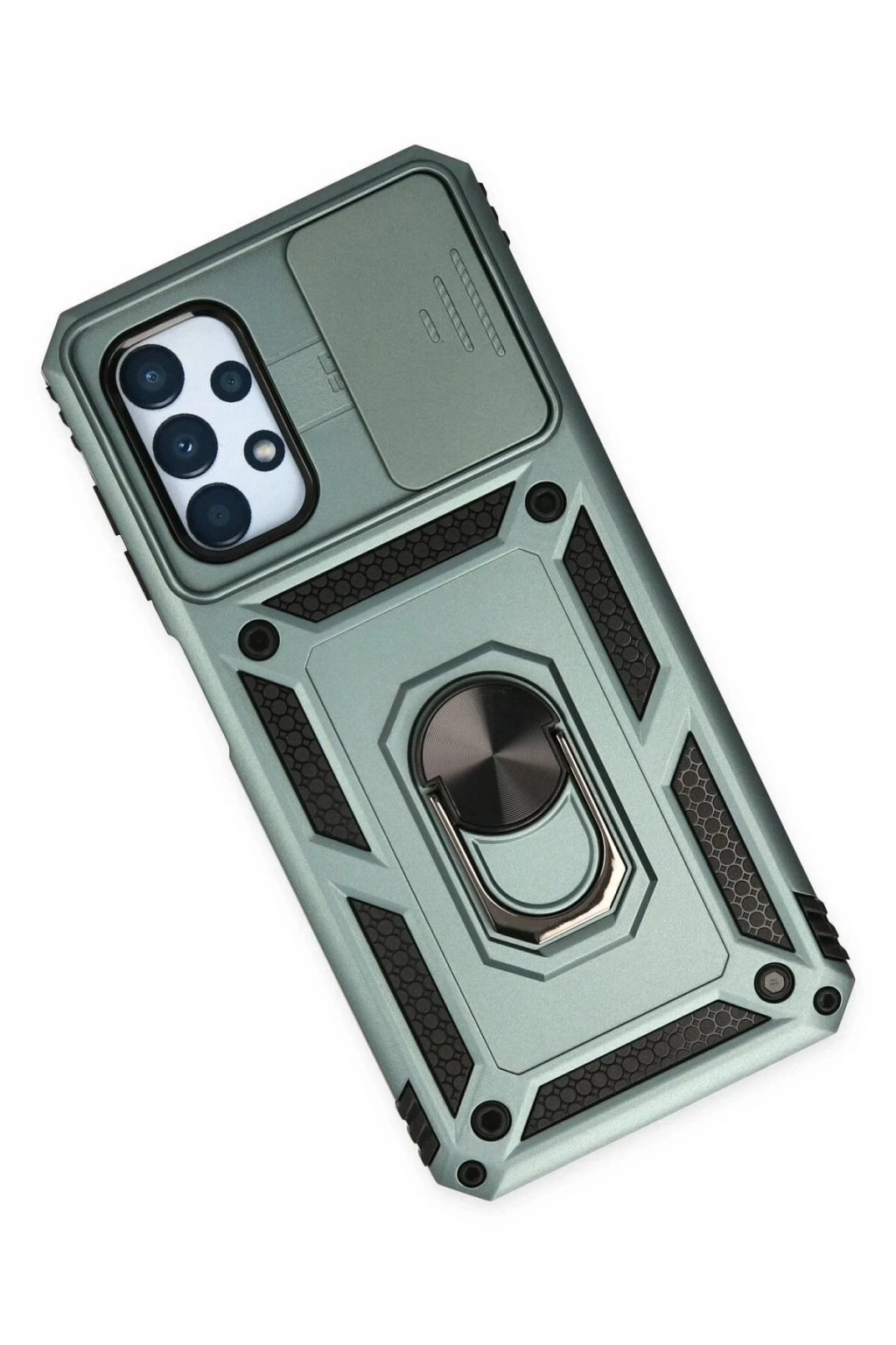 Newface Samsung Galaxy A13 4G Kılıf Pars Lens Yüzüklü Silikon - Yeşil