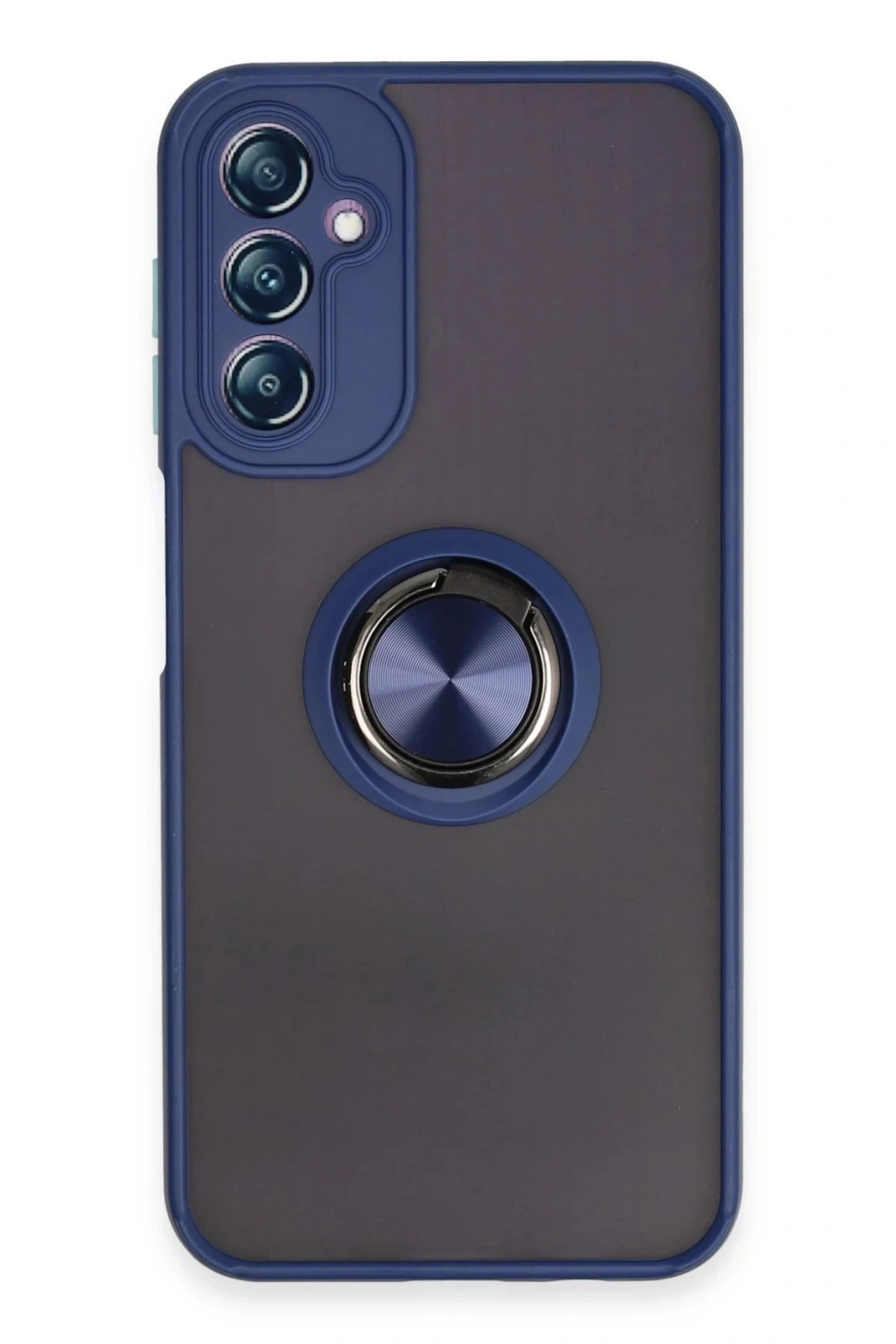 Newface Samsung Galaxy A14 4G Kılıf Montreal Yüzüklü Silikon Kapak - Lacivert