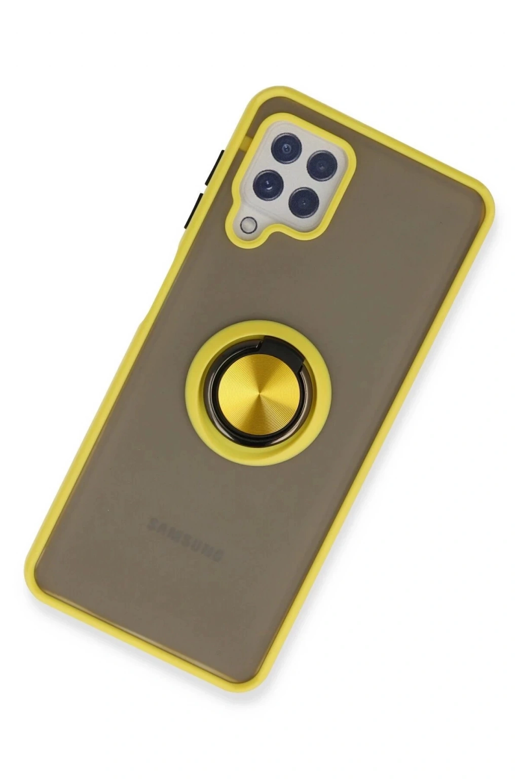 Newface Samsung Galaxy A22 Kılıf Montreal Yüzüklü Silikon Kapak - Sarı