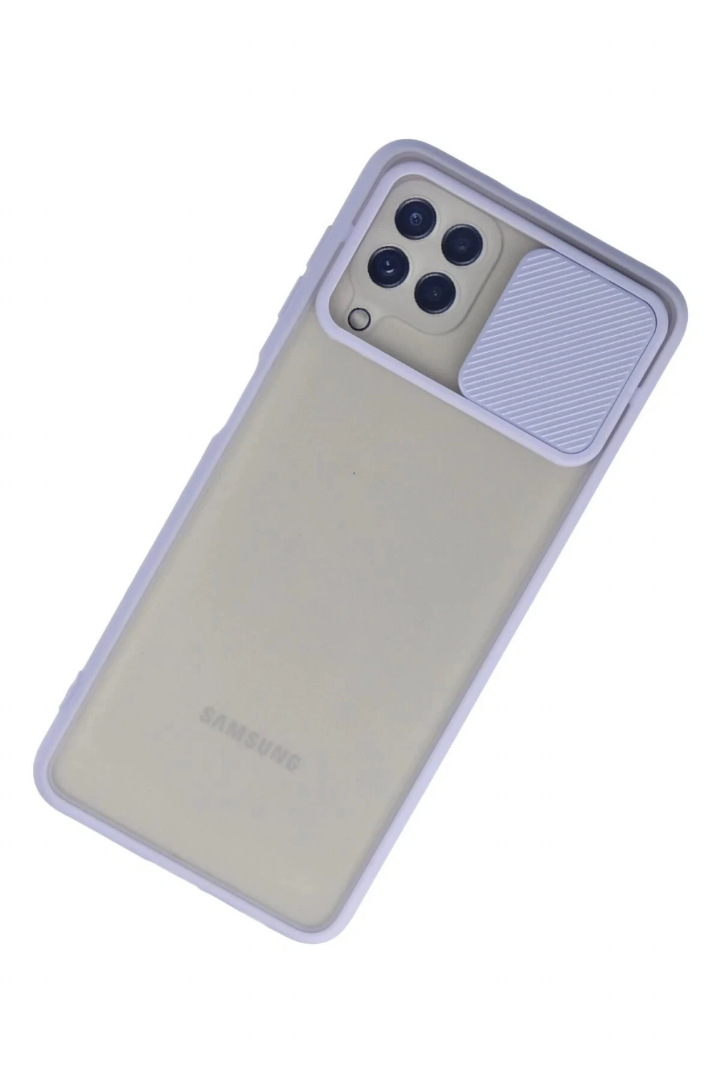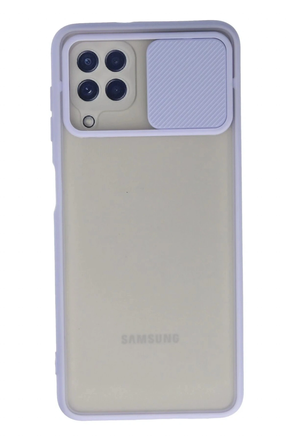 Newface Samsung Galaxy A22 Kılıf Palm Buzlu Kamera Sürgülü Silikon - Lila