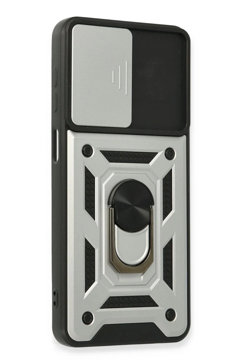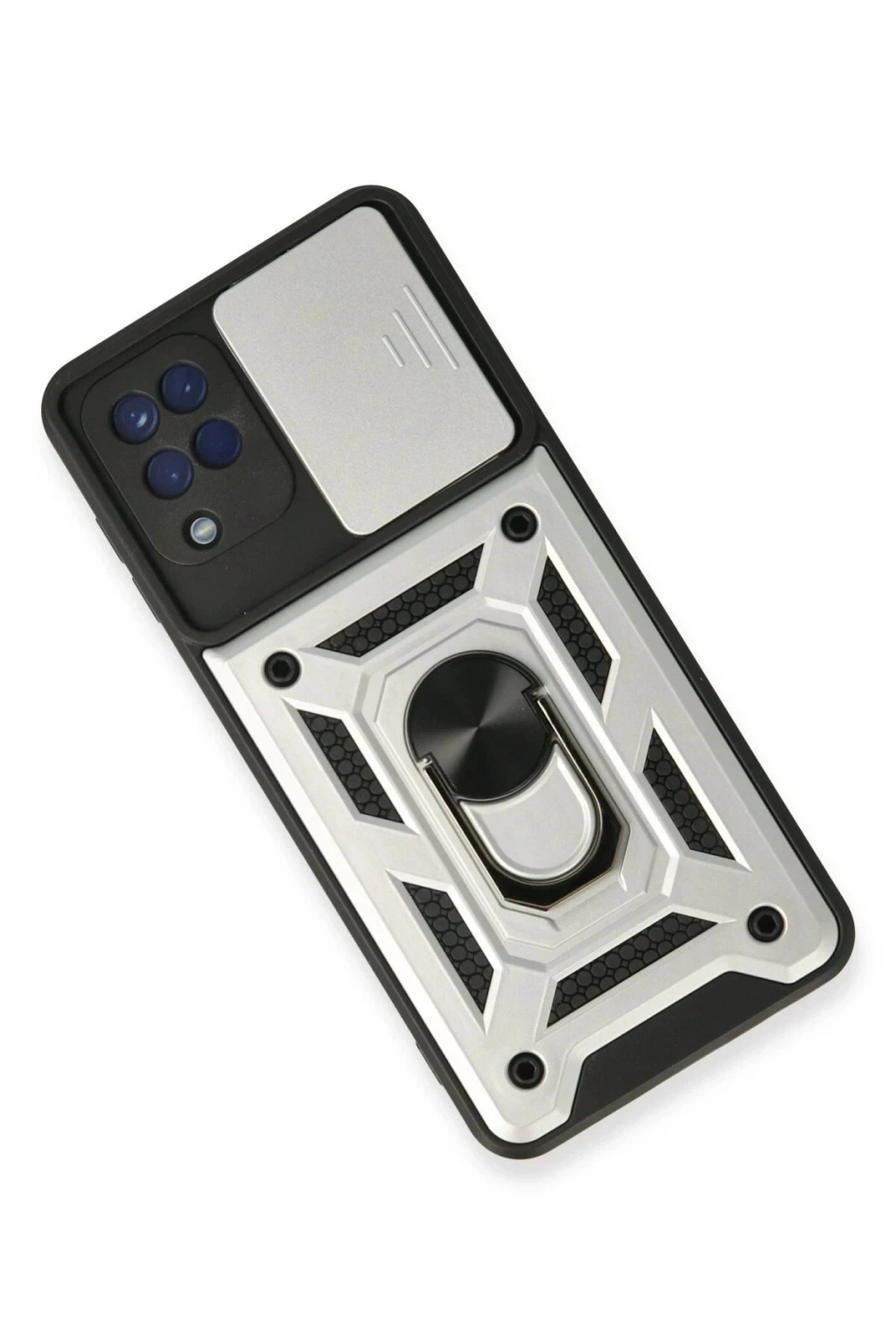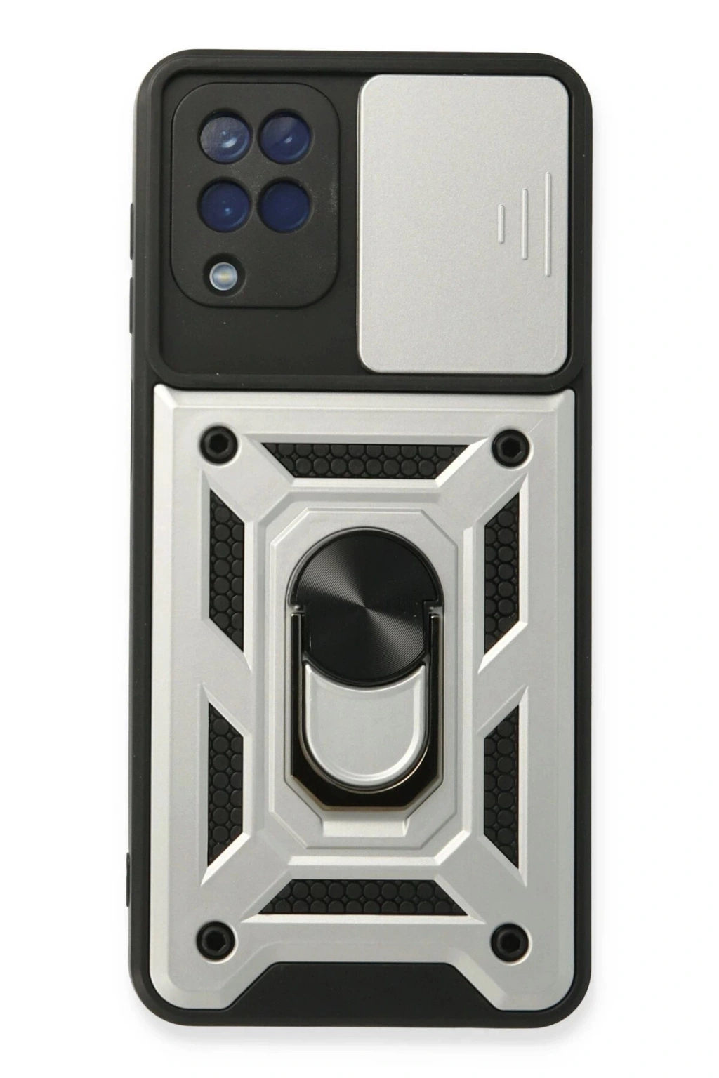 Newface Samsung Galaxy A22 Kılıf Pars Lens Yüzüklü Silikon - Gümüş