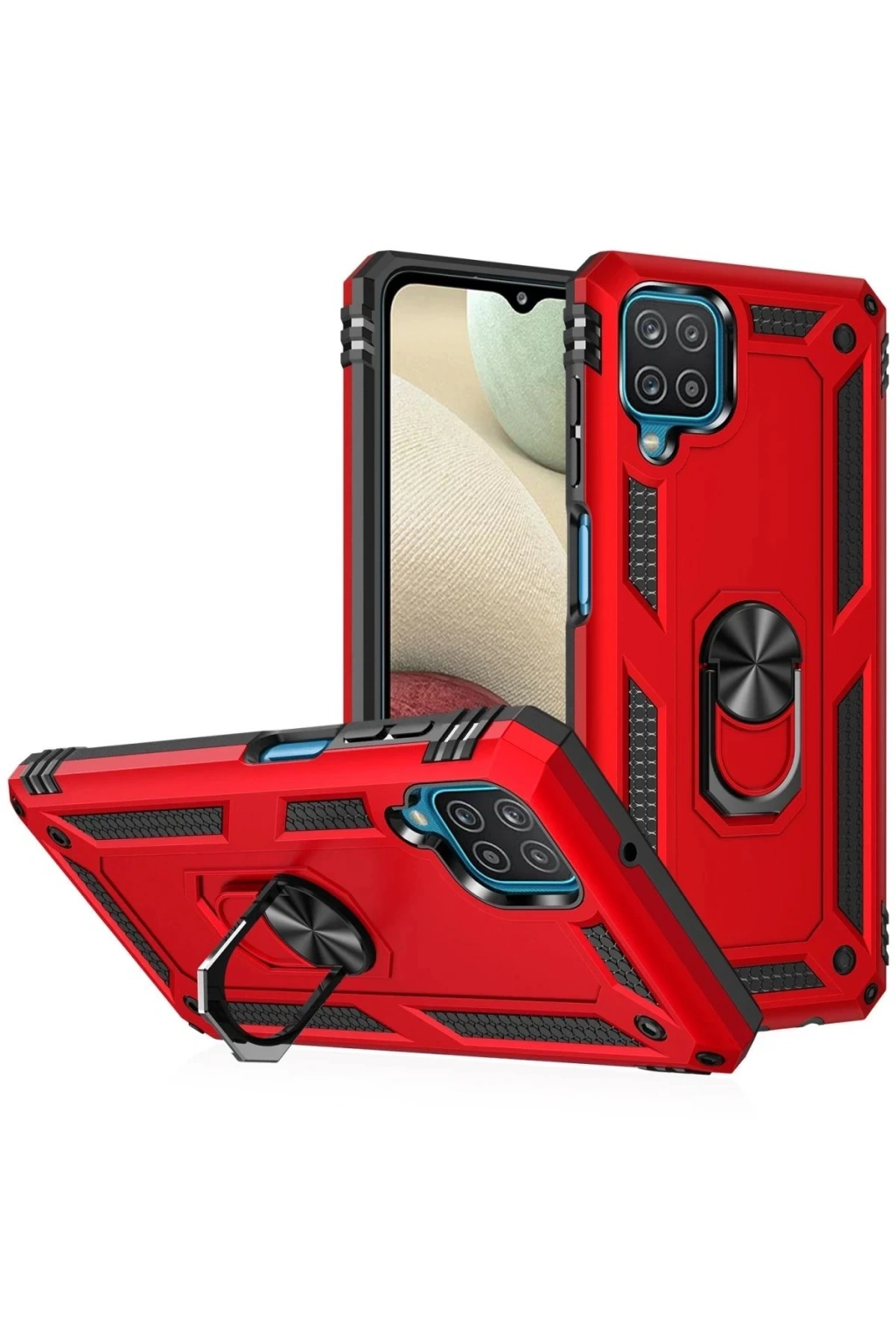 Newface Samsung Galaxy A22 Kılıf Sofya Yüzüklü Silikon Kapak - Kırmızı