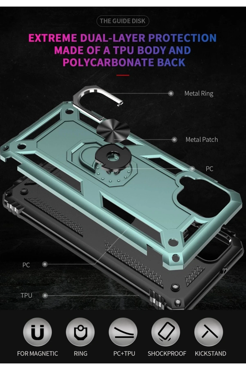 Newface Samsung Galaxy A22 Kılıf Sofya Yüzüklü Silikon Kapak - Yeşil