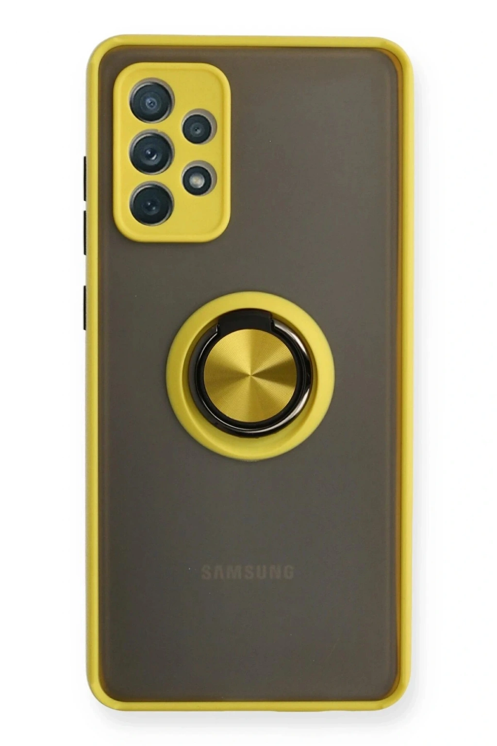 Newface Samsung Galaxy A52 Kılıf Montreal Yüzüklü Silikon Kapak - Sarı