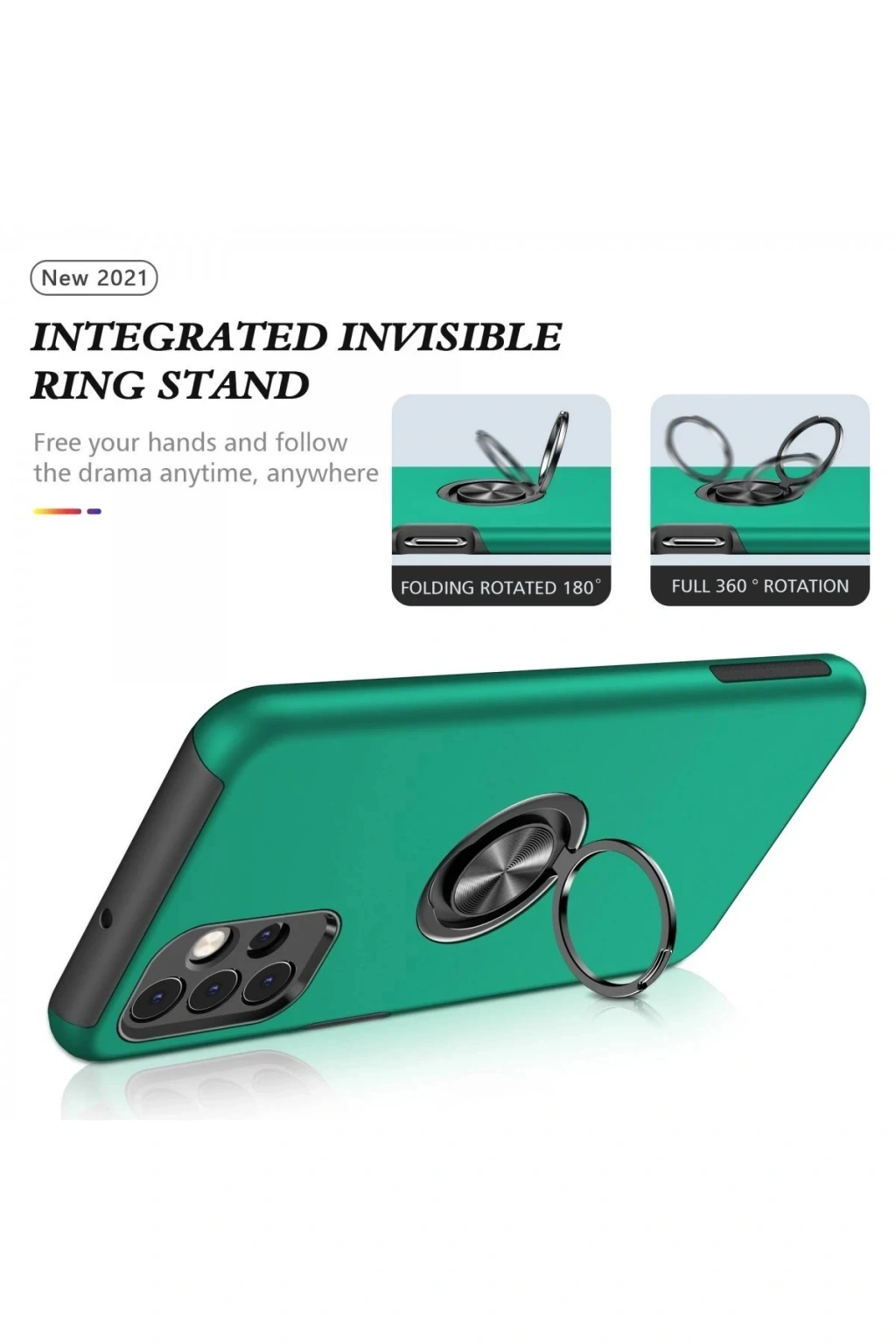 Newface Samsung Galaxy A72 Kılıf Elit Yüzüklü Kapak - Yeşil