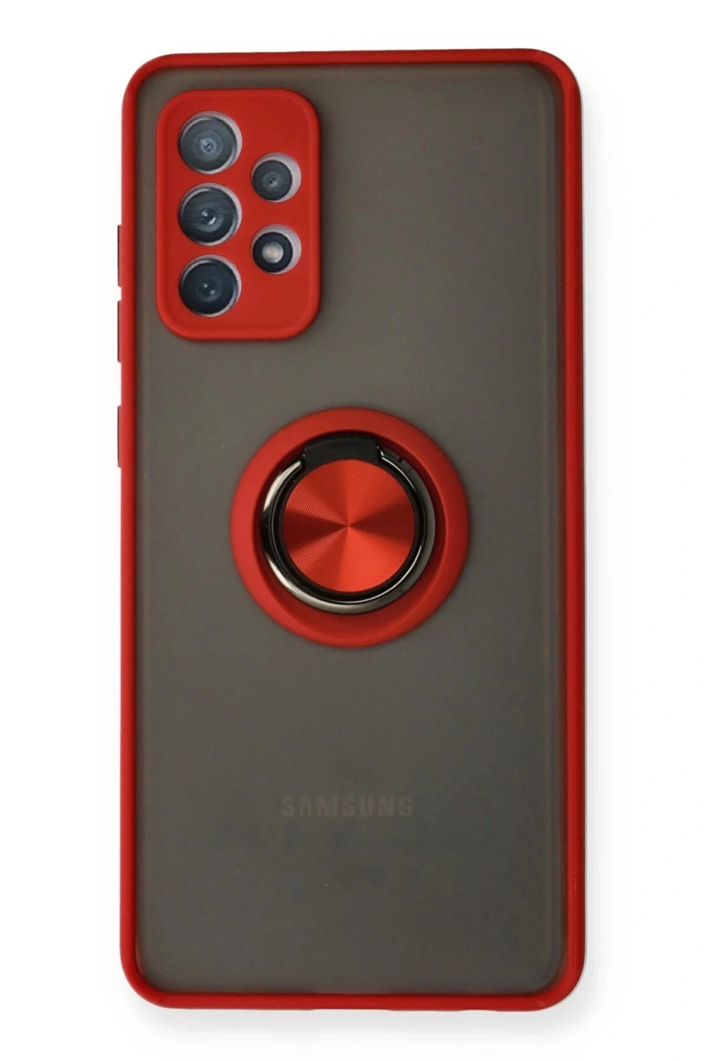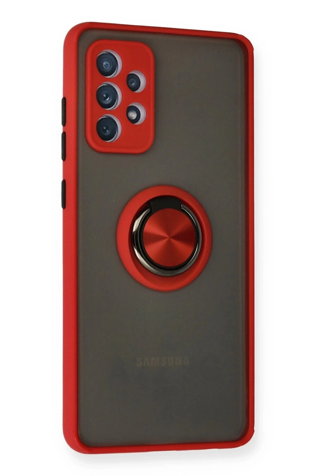 Newface Samsung Galaxy A72 Kılıf Montreal Yüzüklü Silikon Kapak - Kırmızı