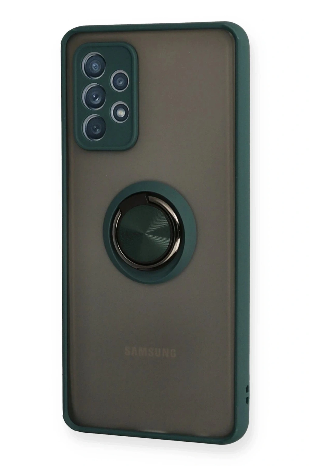 Newface Samsung Galaxy A72 Kılıf Montreal Yüzüklü Silikon Kapak - Yeşil