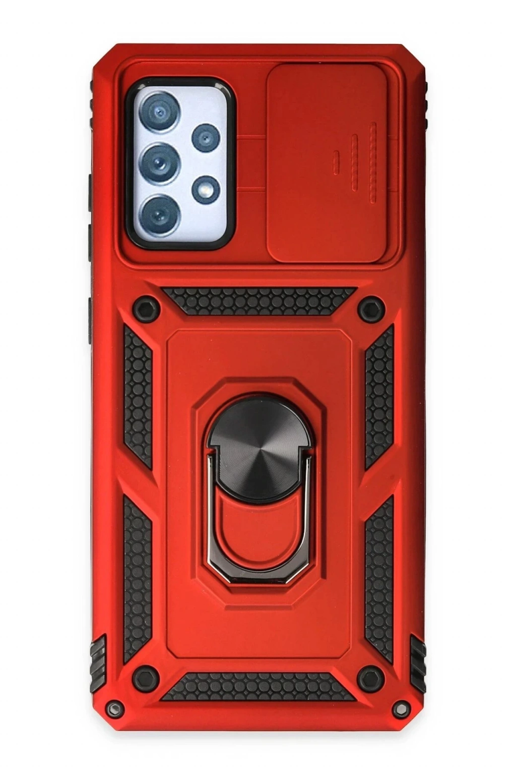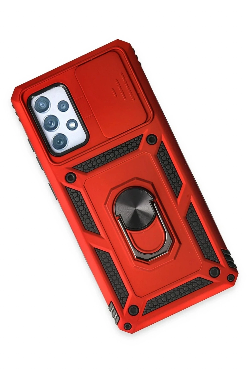 Newface Samsung Galaxy A72 Kılıf Pars Lens Yüzüklü Silikon - Kırmızı