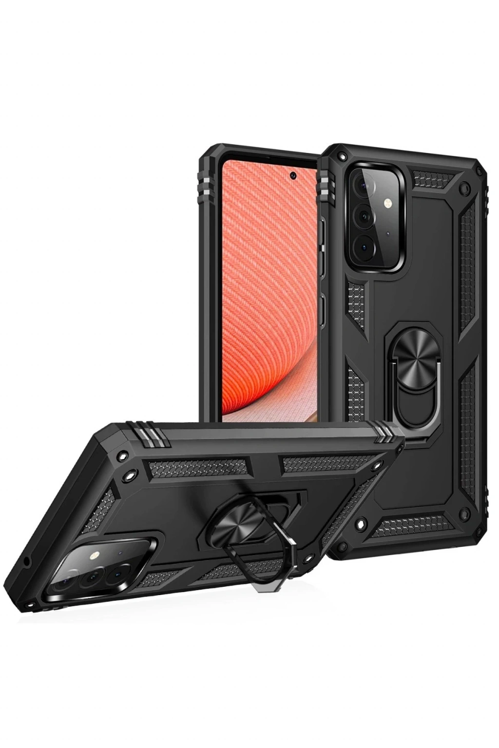 Newface Samsung Galaxy A72 Kılıf Sofya Yüzüklü Silikon Kapak - Siyah