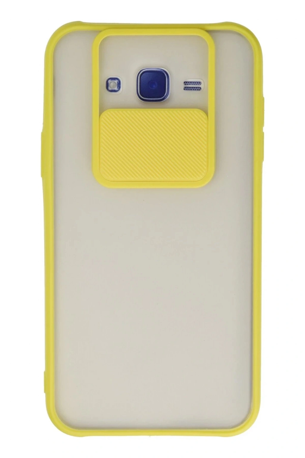 Newface Samsung Galaxy J7 Kılıf Palm Buzlu Kamera Sürgülü Silikon - Sarı