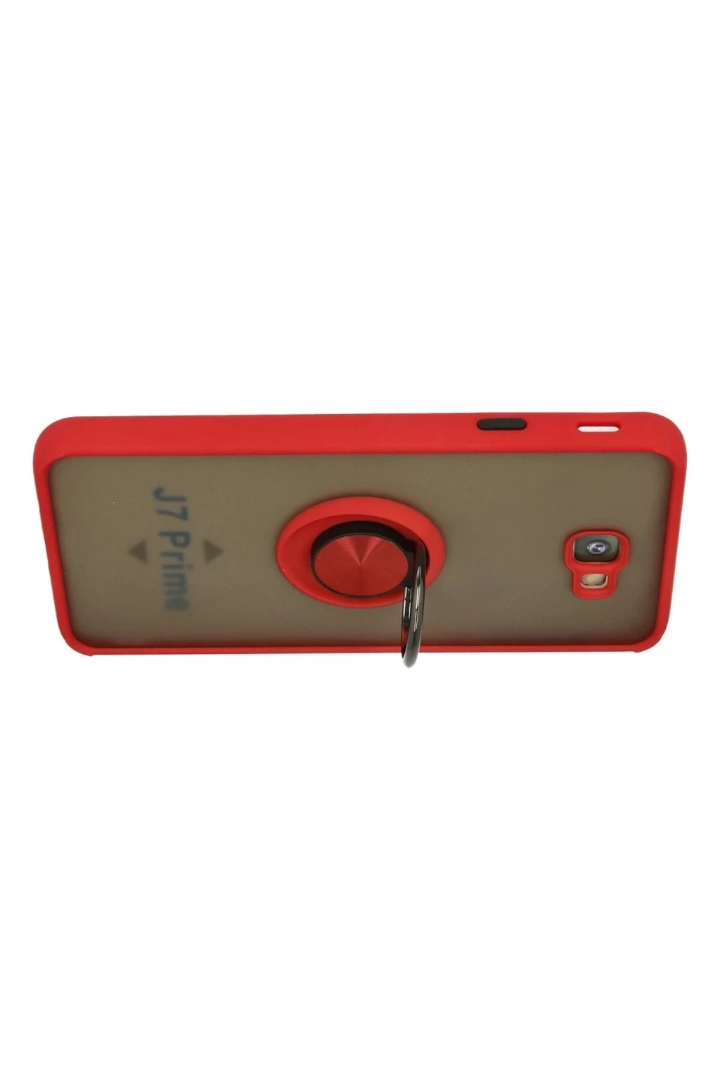Newface Samsung Galaxy J7 Prime Kılıf Montreal Yüzüklü Silikon Kapak - Kırmızı