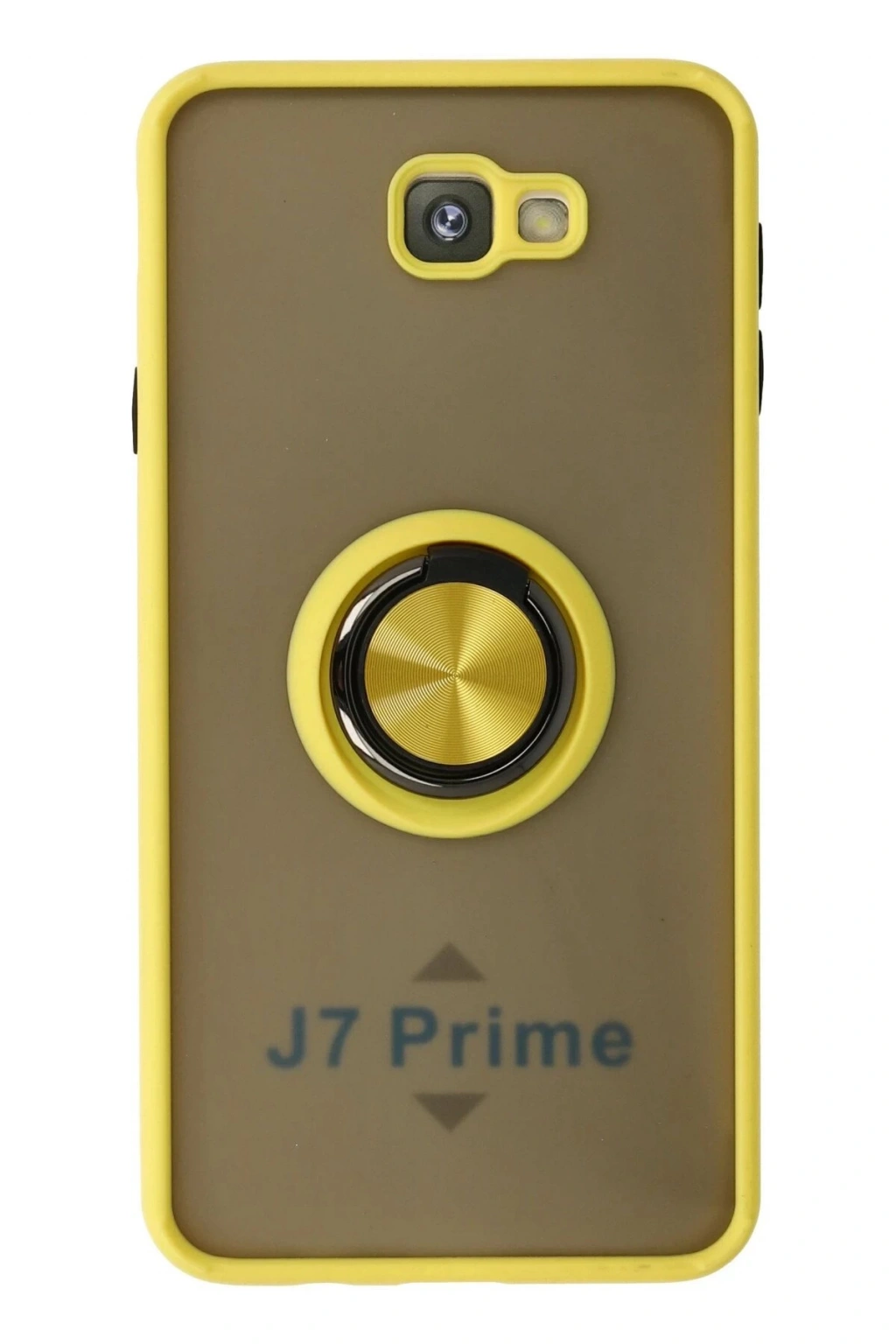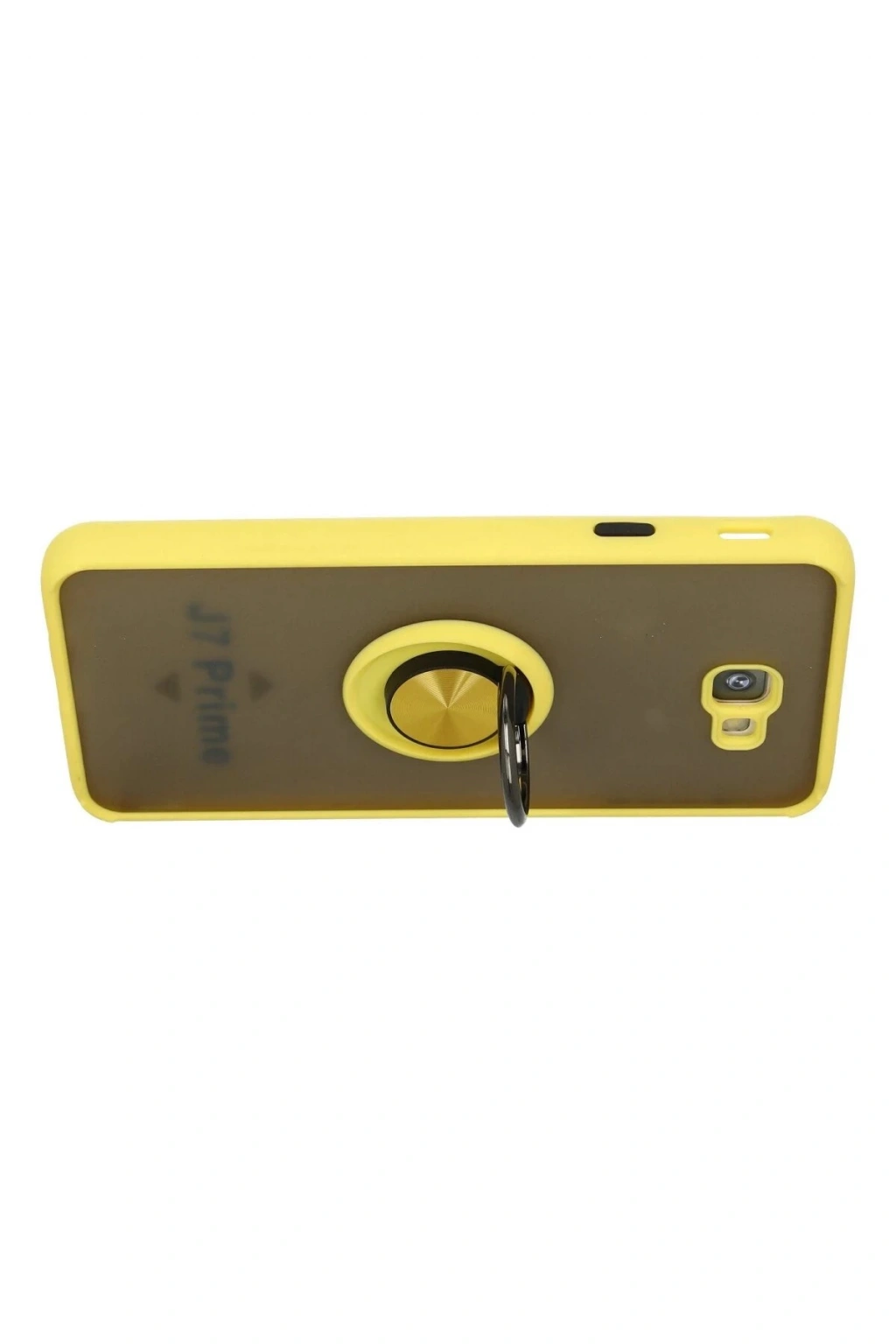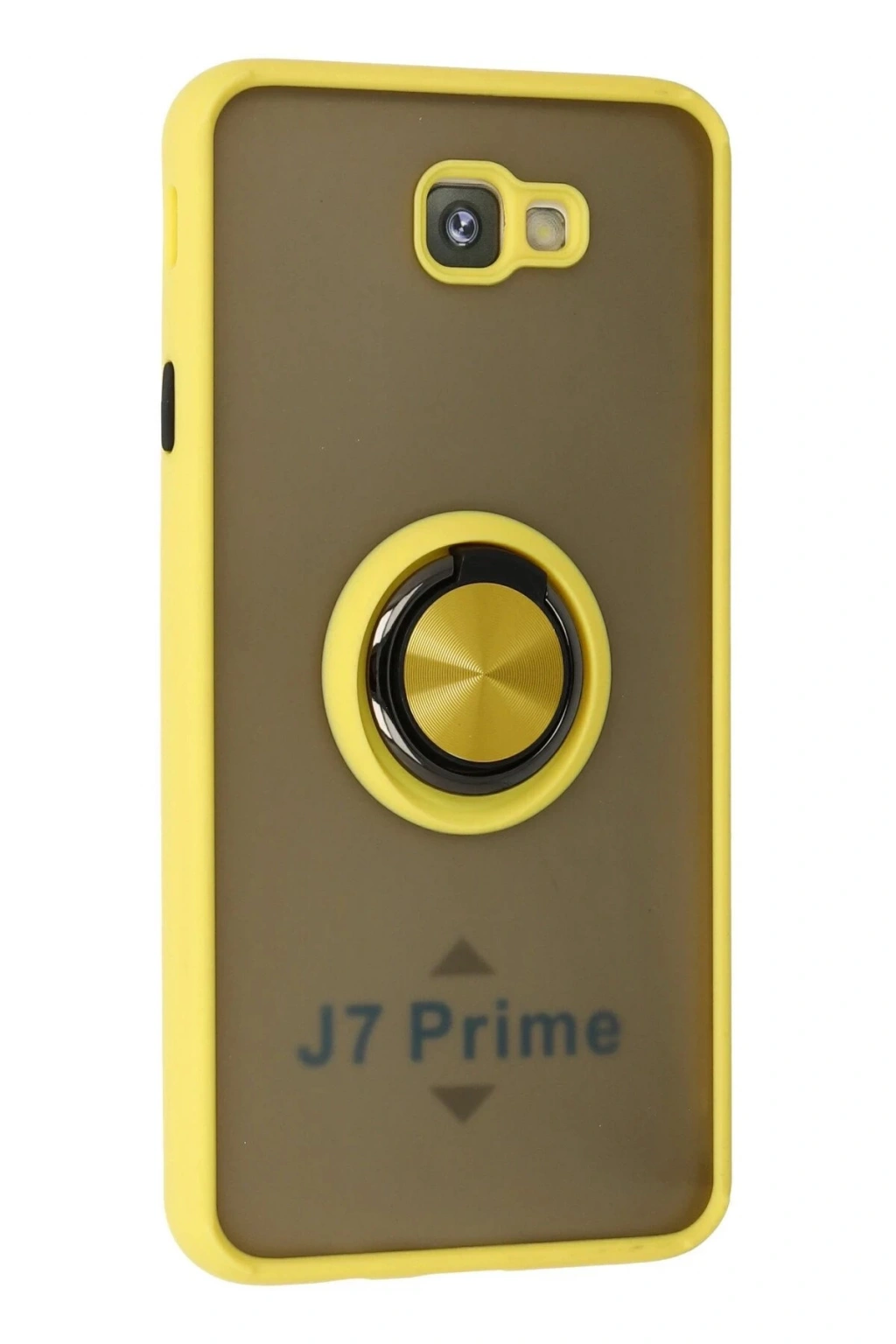 Newface Samsung Galaxy J7 Prime Kılıf Montreal Yüzüklü Silikon Kapak - Sarı