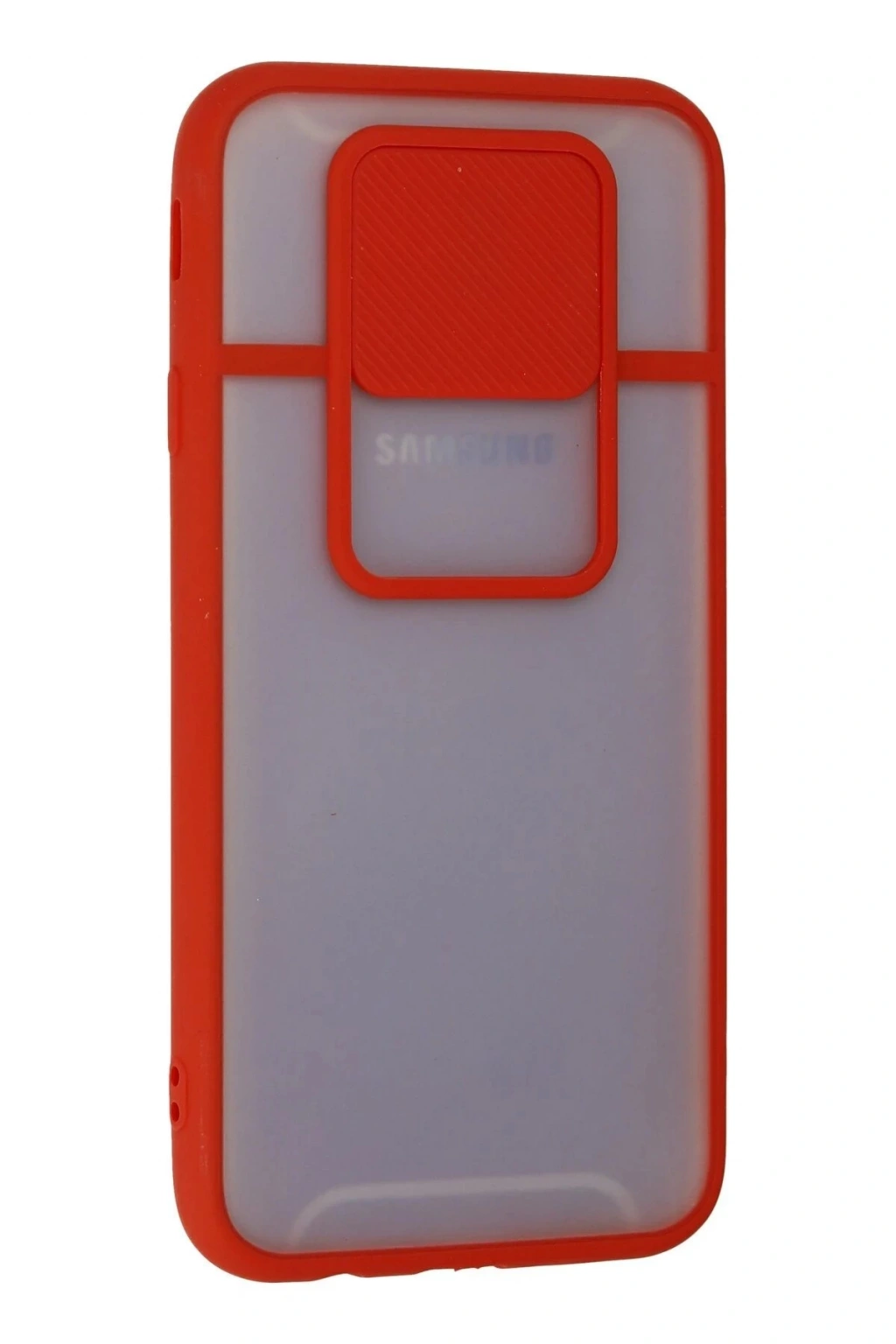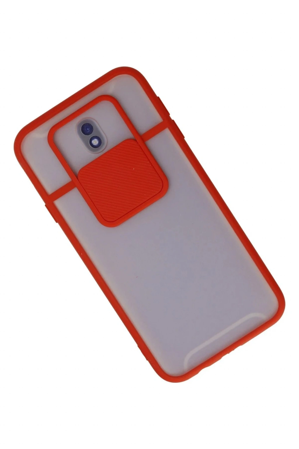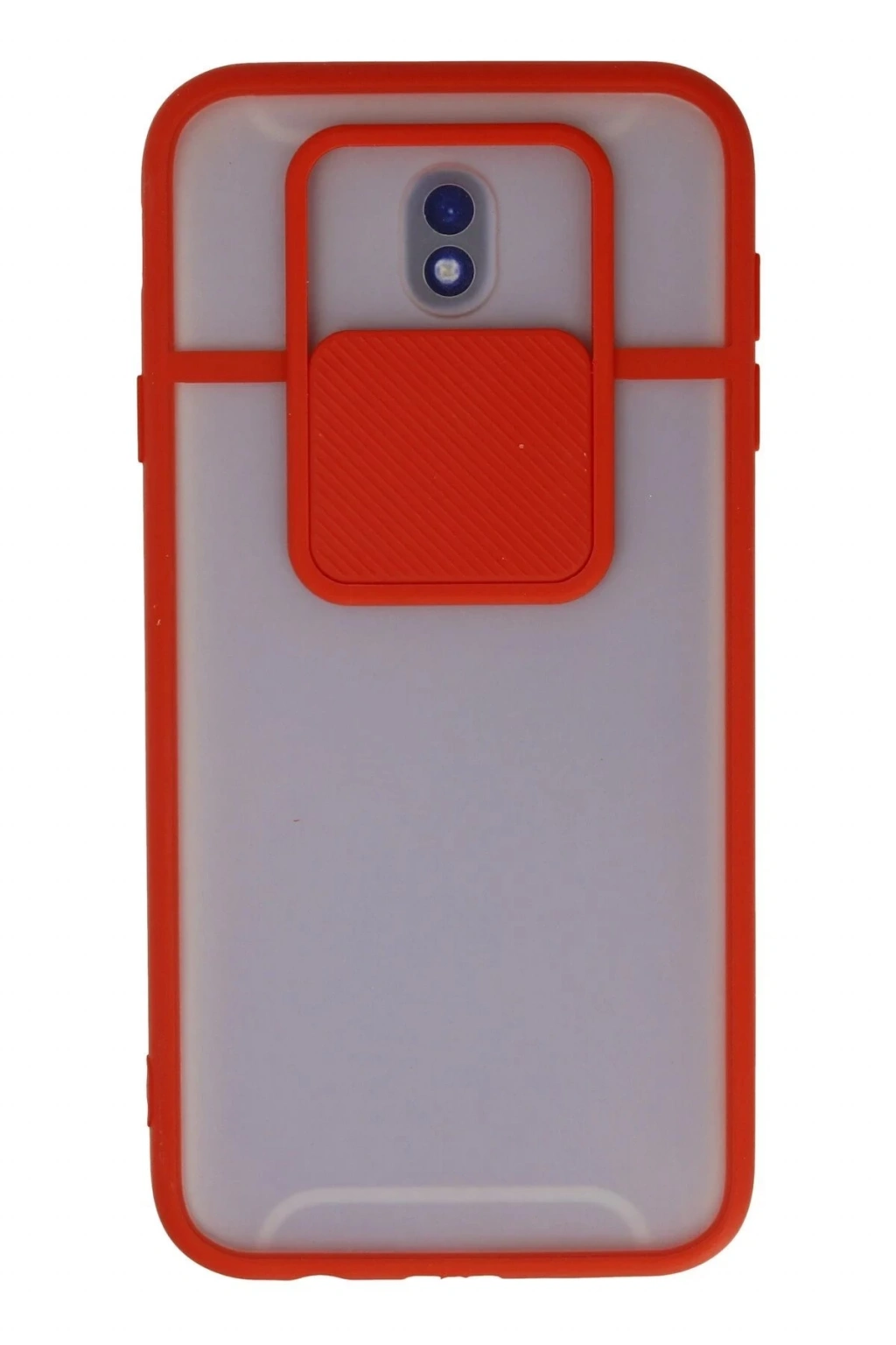 Newface Samsung Galaxy J7 Pro / J730 Kılıf Palm Buzlu Kamera Sürgülü Silikon - Kırmızı