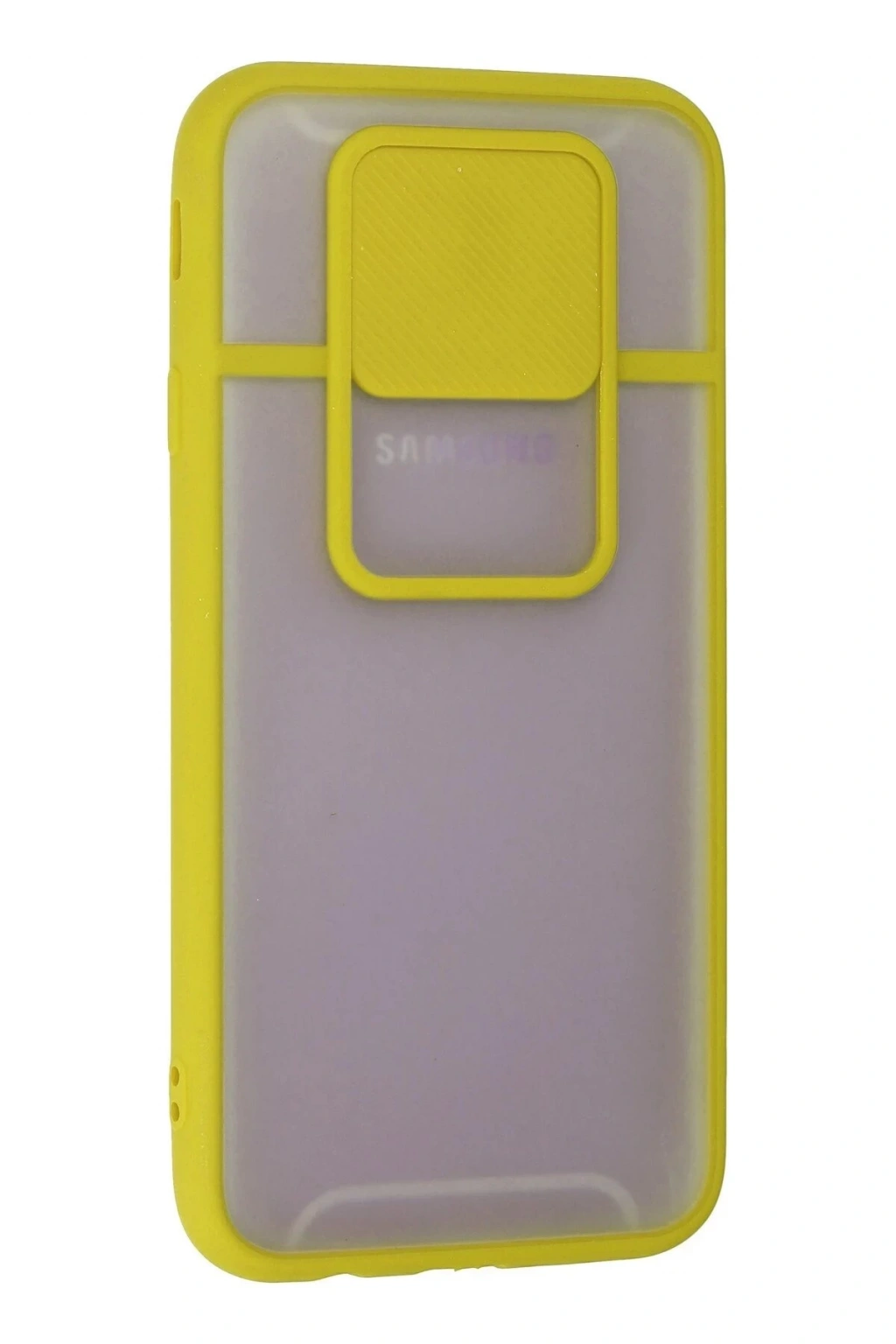 Newface Samsung Galaxy J7 Pro / J730 Kılıf Palm Buzlu Kamera Sürgülü Silikon - Sarı