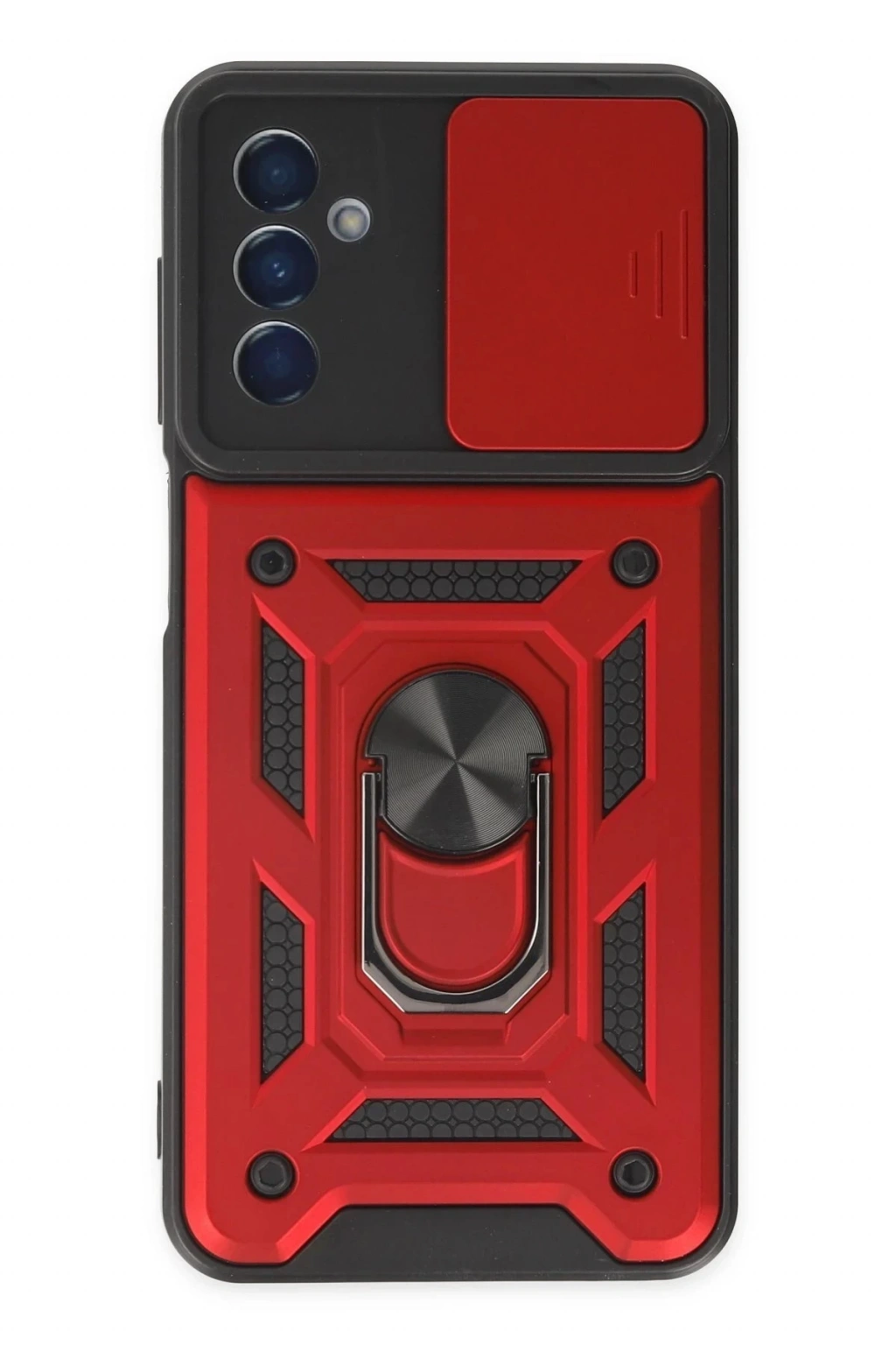 Newface Samsung Galaxy M13 Kılıf Pars Lens Yüzüklü Silikon - Kırmızı