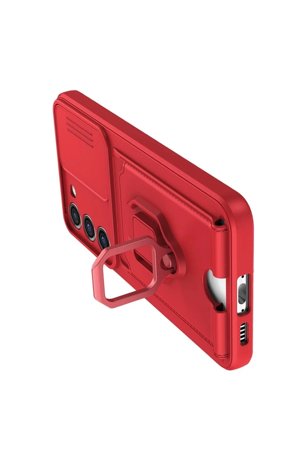 Newface Samsung Galaxy M34 5G Kılıf Zuma Kartvizitli Yüzüklü Silikon - Kırmızı