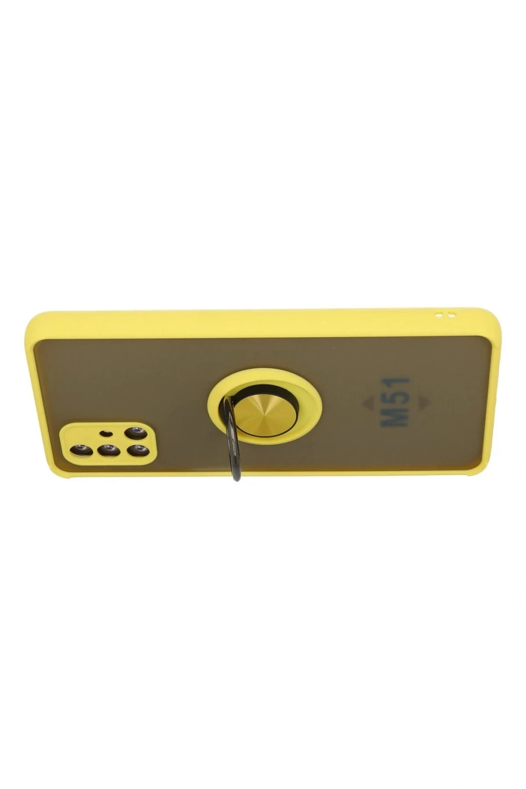 Newface Samsung Galaxy M51 Kılıf Montreal Yüzüklü Silikon Kapak - Sarı