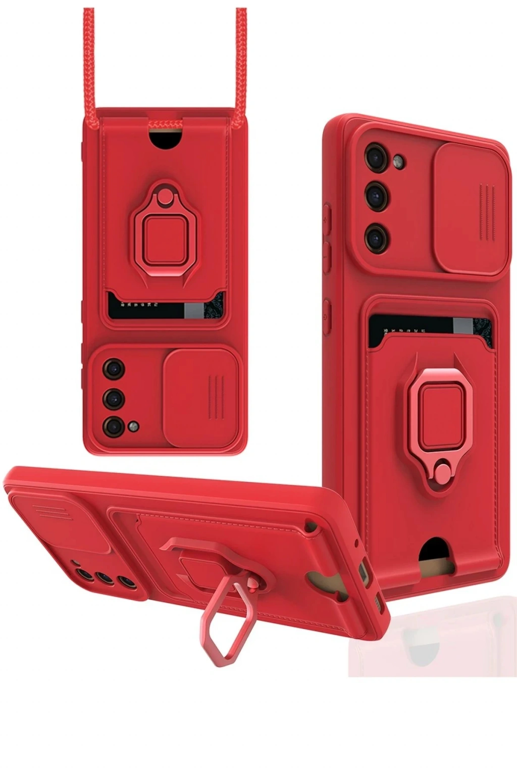Newface Samsung Galaxy S20 FE Kılıf Zuma Kartvizitli Yüzüklü Silikon - Kırmızı