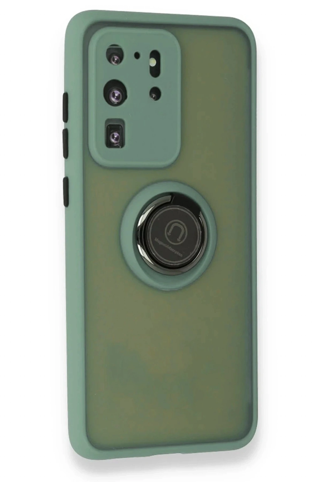 Newface Samsung Galaxy S20 Ultra Kılıf Montreal Yüzüklü Silikon Kapak - Yeşil