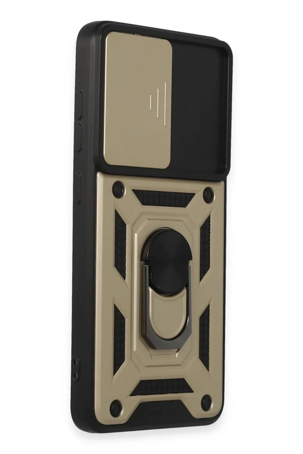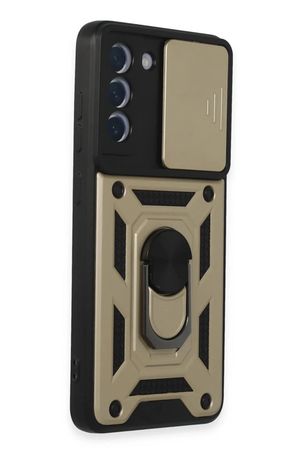 Newface Samsung Galaxy S21 FE Kılıf Pars Lens Yüzüklü Silikon - Gold