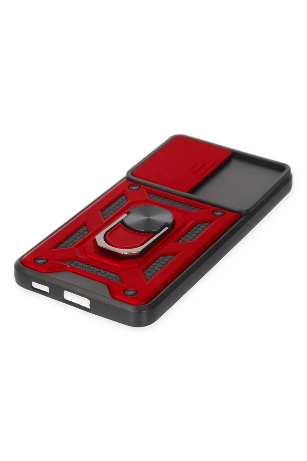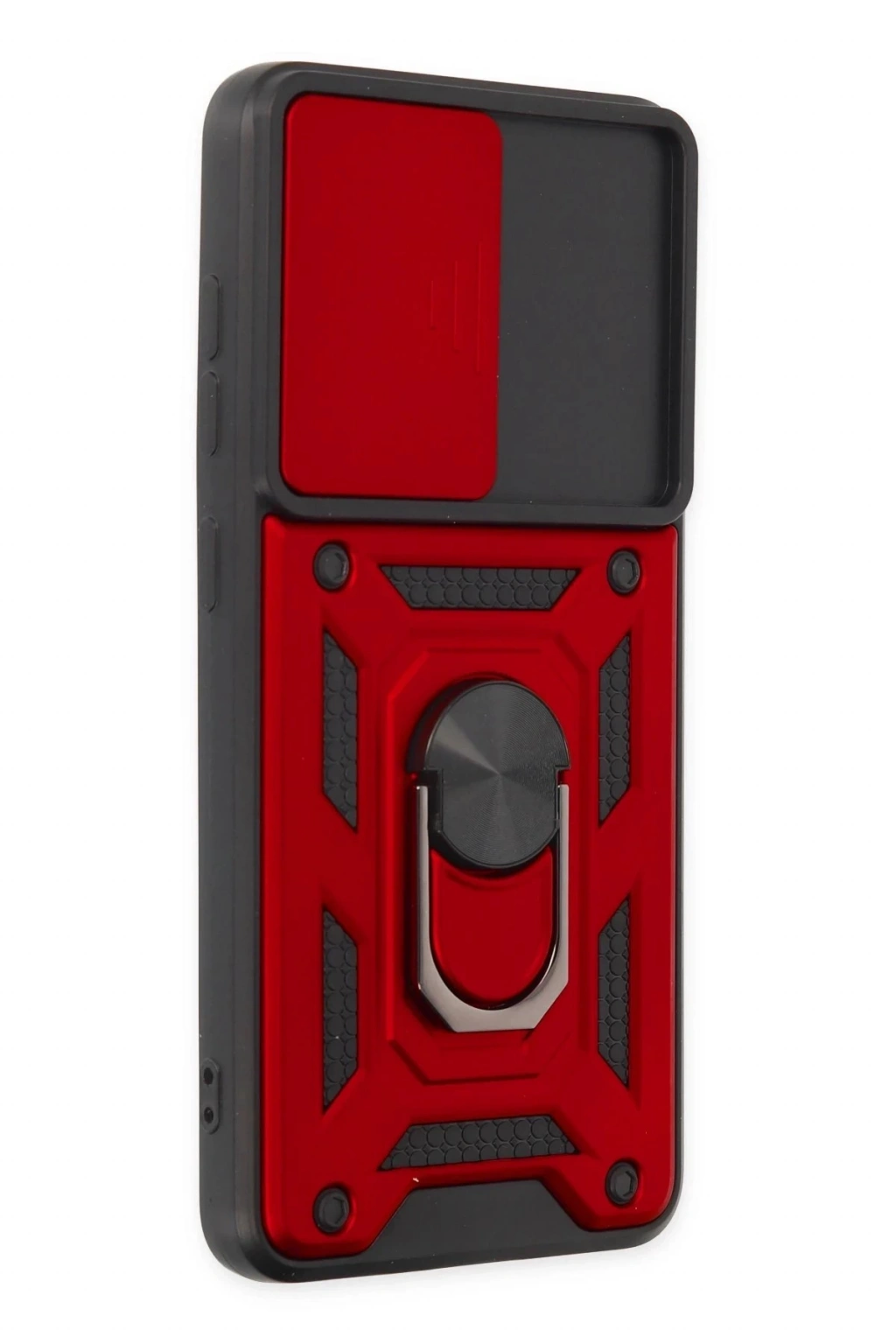 Newface Samsung Galaxy S21 FE Kılıf Pars Lens Yüzüklü Silikon - Kırmızı