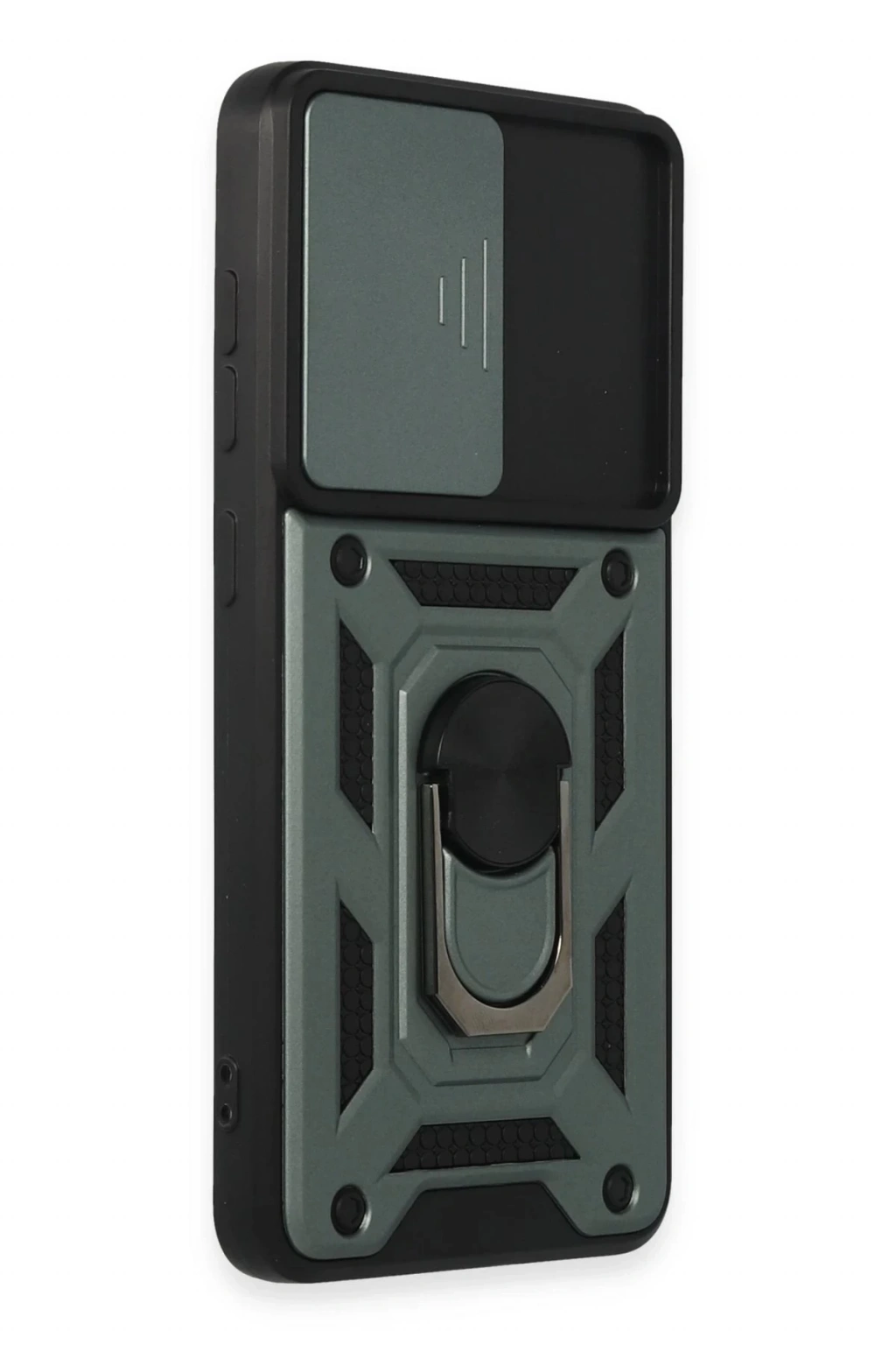 Newface Samsung Galaxy S21 FE Kılıf Pars Lens Yüzüklü Silikon - Yeşil