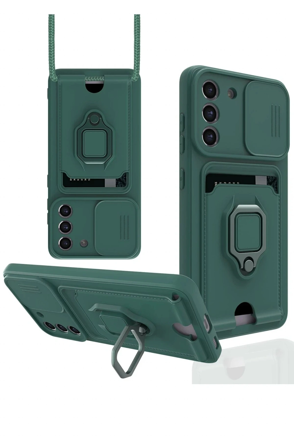 Newface Samsung Galaxy S21 FE Kılıf Zuma Kartvizitli Yüzüklü Silikon - Yeşil